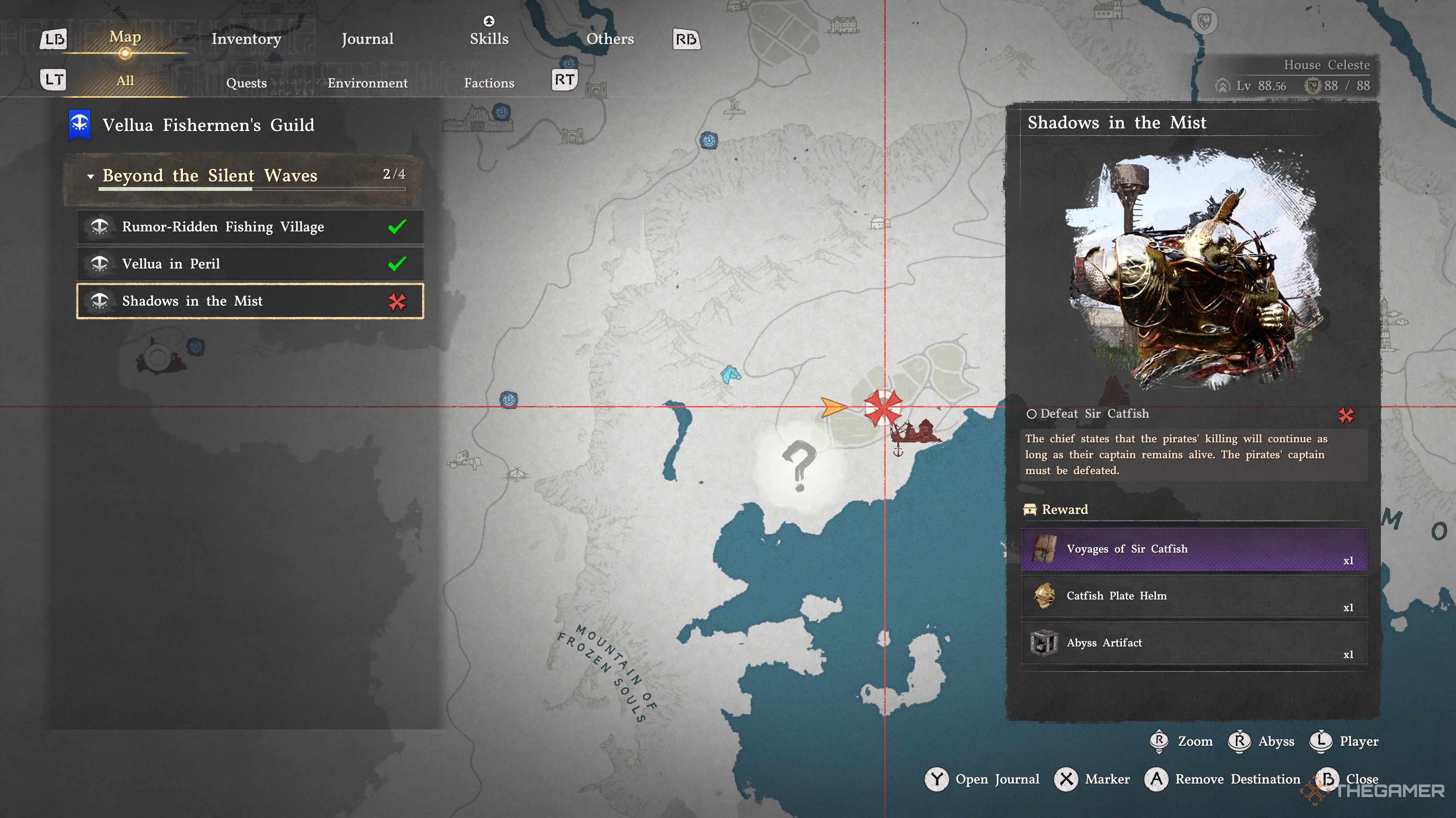 После того, как вы убедитесь, что староста деревни, Лукас, в безопасности, вы можете продолжить квест ‘Shadows In The Mist’, победив сэра Кэтфиша.