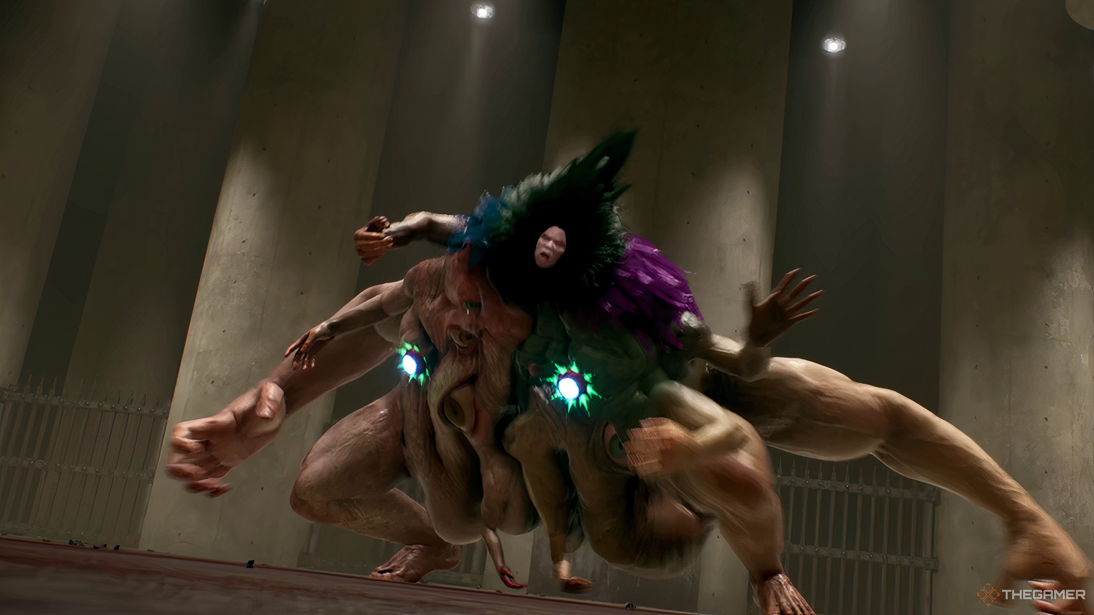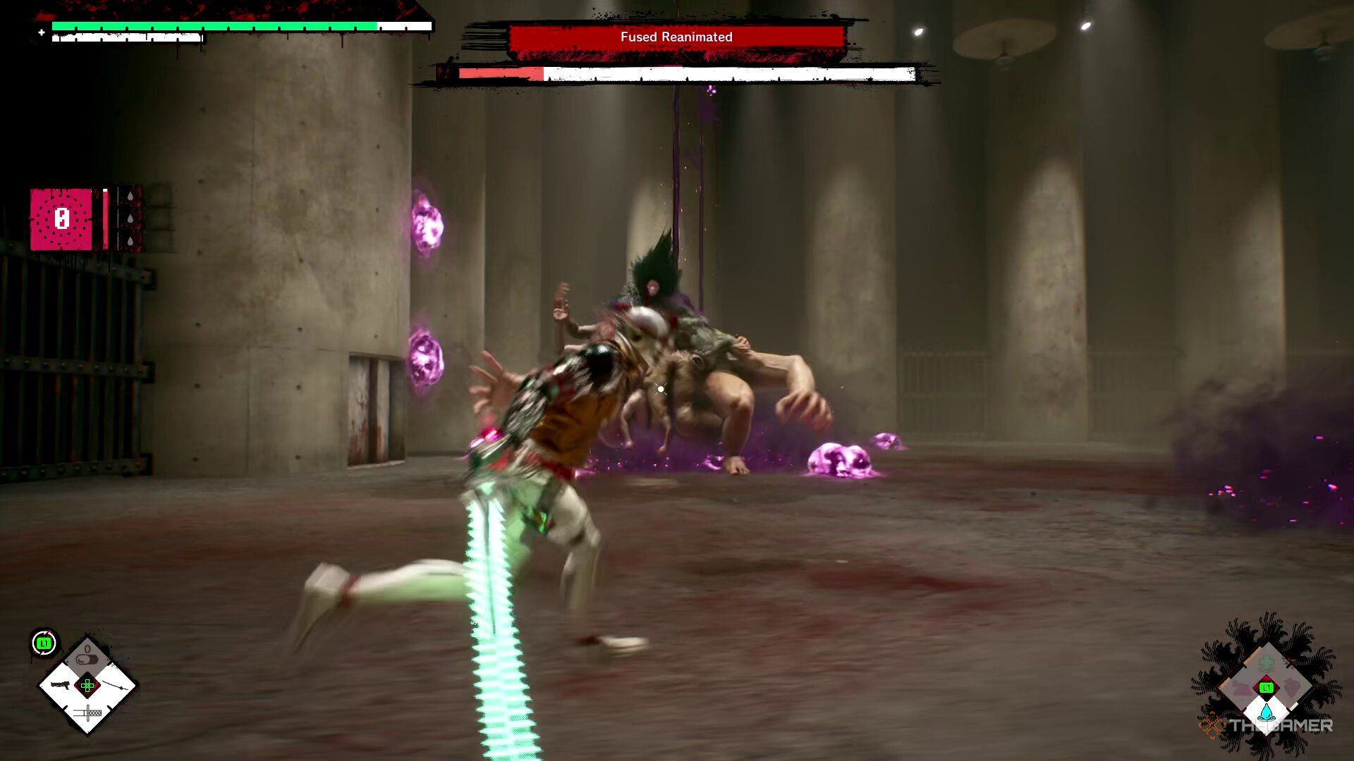 Fused Reanimated – особенно тревожный враг в Romeo is a Dead Man, и его стиль боя так же неприятен, как и его внешний вид. Это чудовищное существо использует окружающую среду против вас, покрывая области ядом и переключаясь между атакующими рывками и отступлением к потолку.