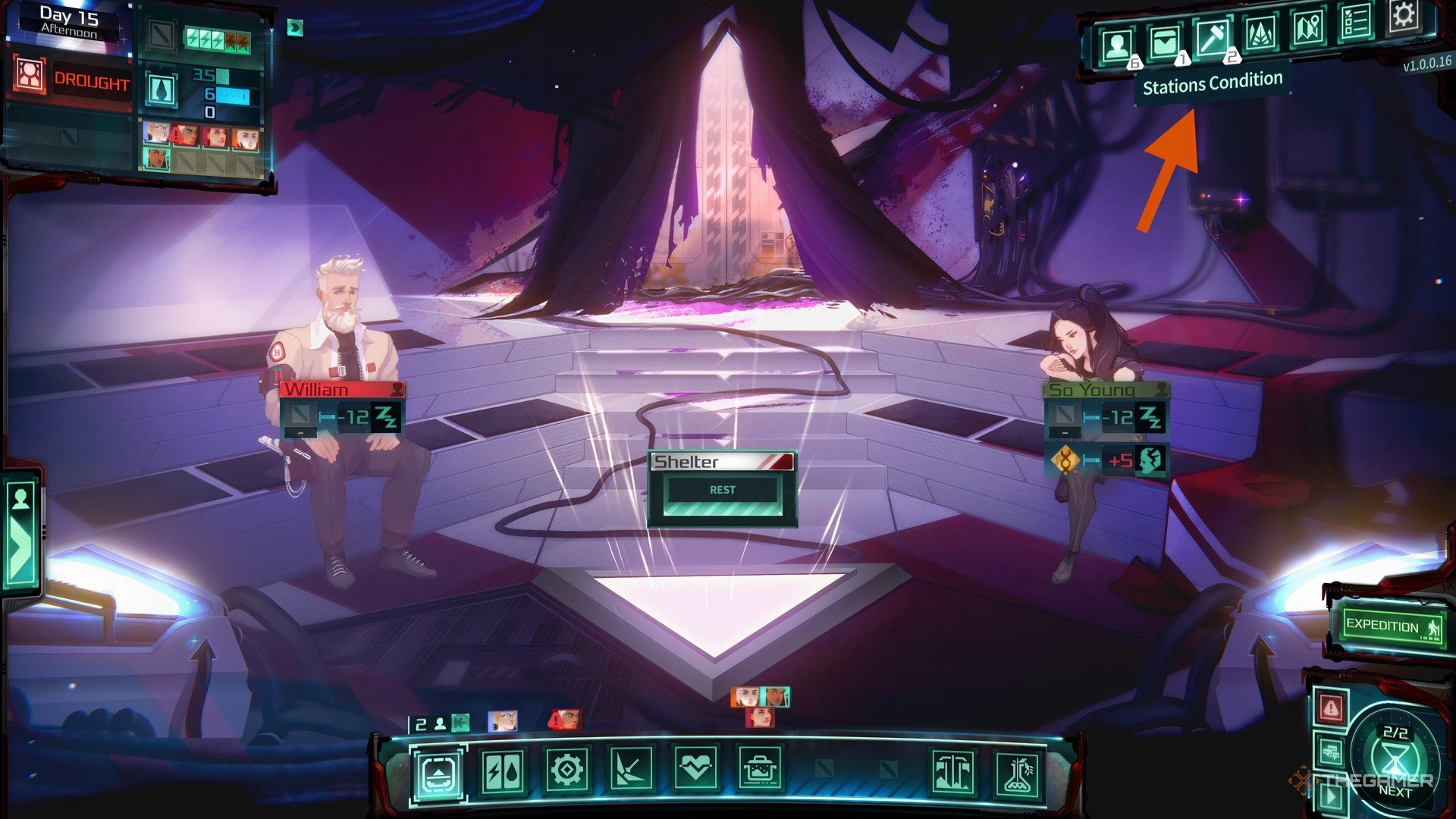 Если у вас мало материалов для ремонта или вы предпочитаете их экономить, вы можете использовать Лю для ремонта станций. Благодаря его особой способности, любая станция, на которой он работает и которая повреждена, будет автоматически немного восстанавливаться каждый ход, вместо того чтобы продолжать разрушаться.