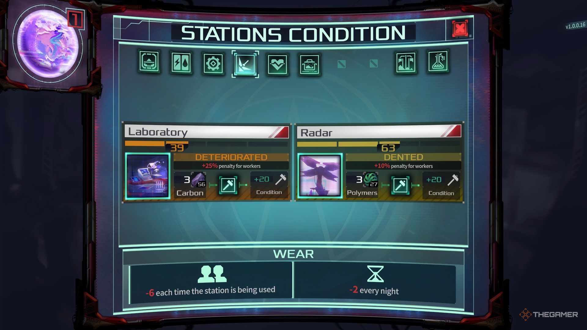 Окей, как только я выясню, какие станции неисправны, пора их починить! К счастью, я могу сделать это прямо на том же экране, где проверяю их состояние. Под каждой станцией есть небольшая иконка молотка, которая показывает, какие материалы мне нужны и насколько каждая починка улучшит её состояние. Если что-то действительно сломано, мне, возможно, придется ремонтировать это несколько раз, чтобы вернуть к полной мощности.