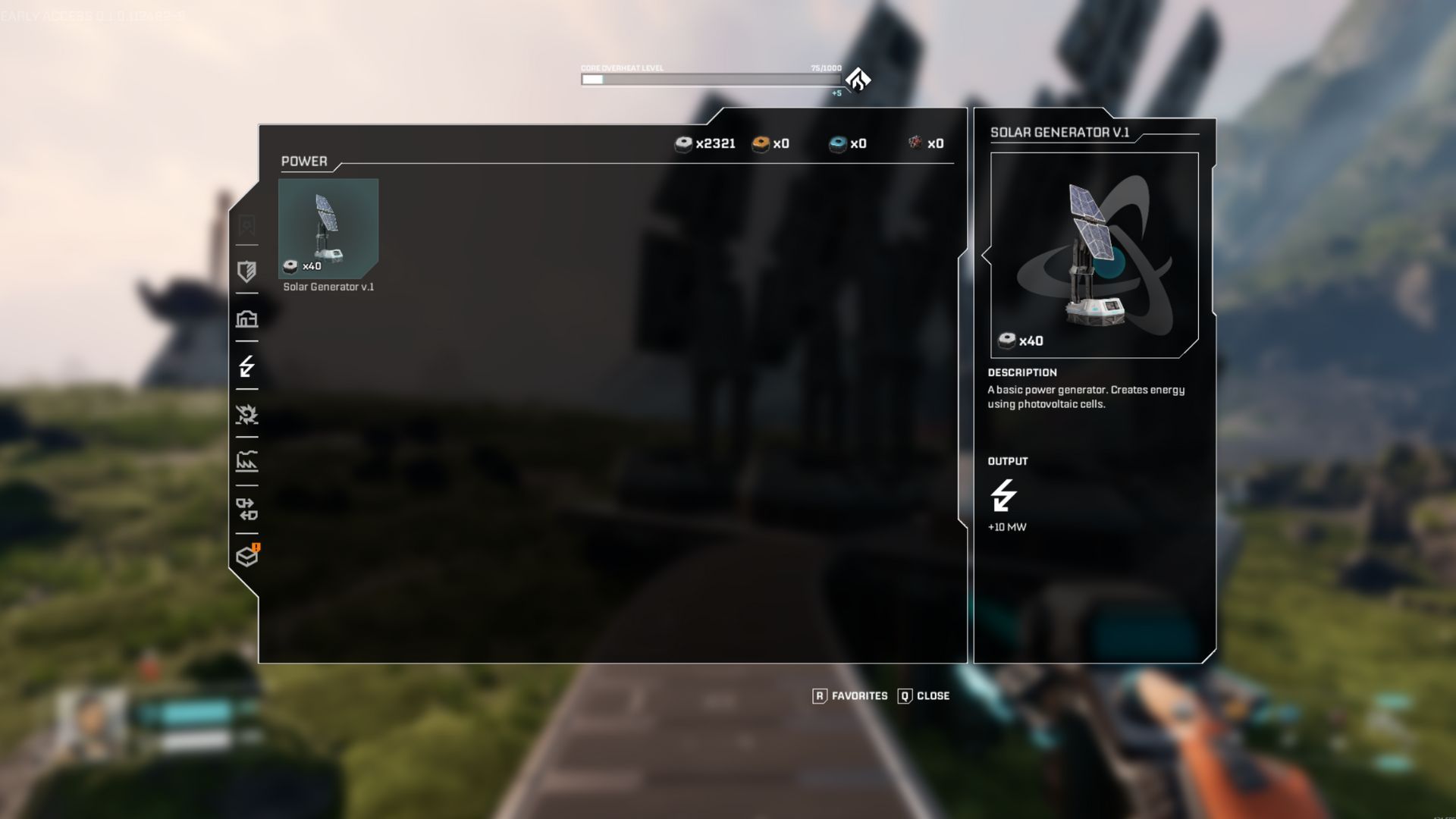 Ранние строения, такие как Солнечный Генератор v.1, строятся с использованием Основного Строительного Материала. По мере продвижения в игре вы будете открывать и нуждаться в использовании более сложных материалов.
