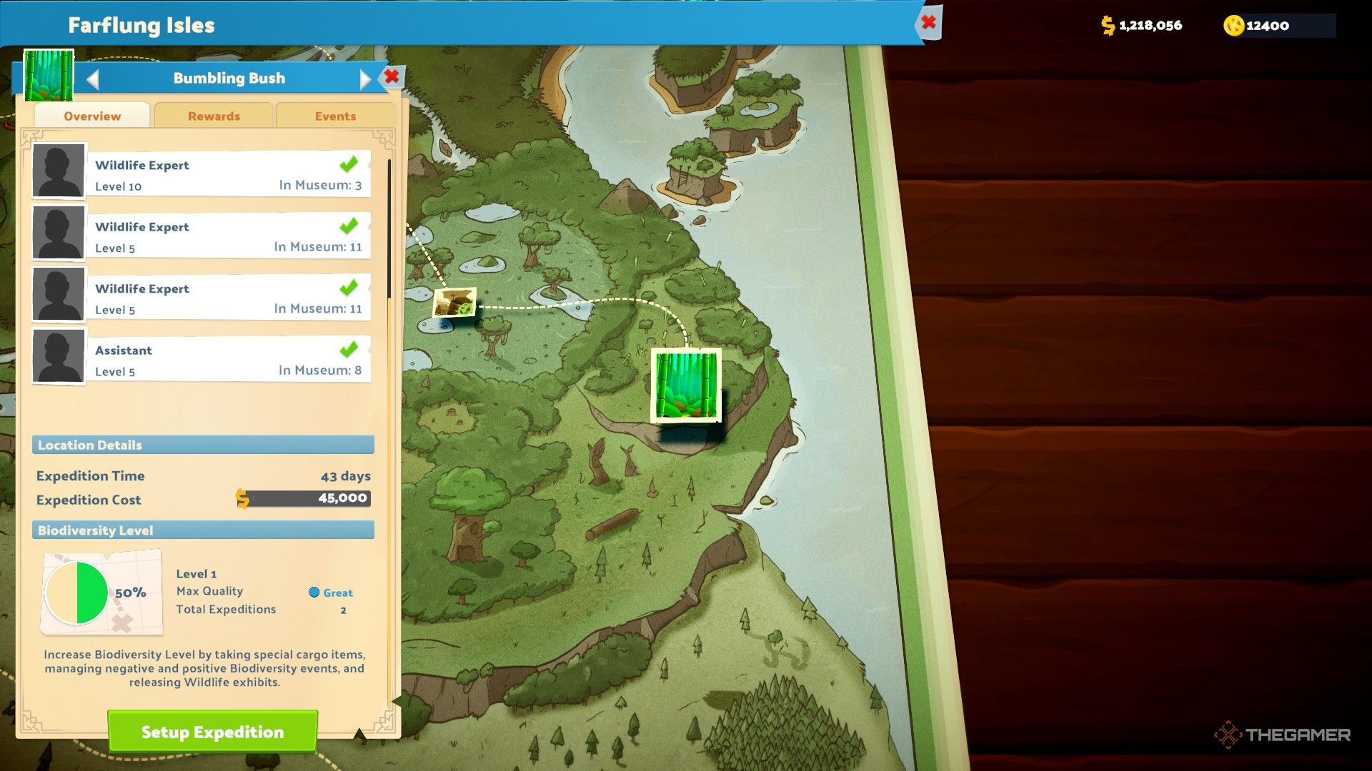 Если вы посмотрите на карту экспедиций и выберете интересующую точку на Дальних островах, она отобразит ваш текущий Уровень биоразнообразия. Достижение 3-го уровня – это самый высокий возможный Уровень биоразнообразия в каждой локации.