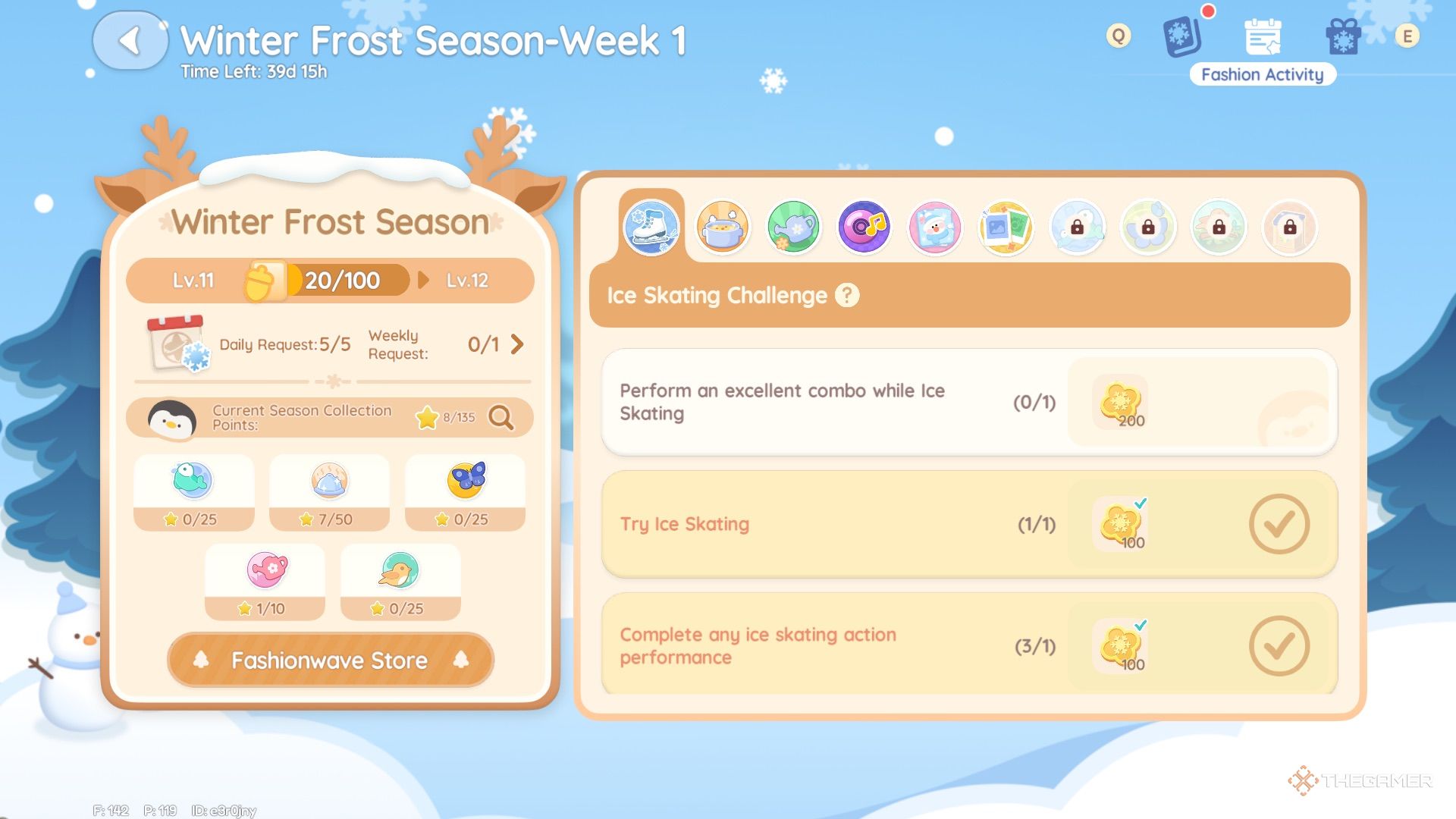 Вы можете заработать от 100 до 300 Fashionwave Tokens за каждое выполненное задание. Новые задания будут доступны каждую неделю в течение месяца. Чтобы увидеть новинки, нажмите на значок снеговика Winter Frost в верхней части экрана.