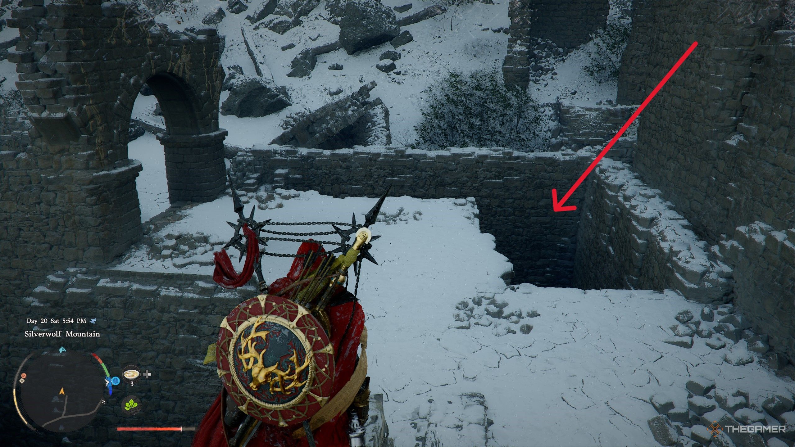Замок — большое, разрушенное здание, расположенное между несколькими горами. Просто отправляйтесь в место, отмеченное на фотографии, и вы его найдете.