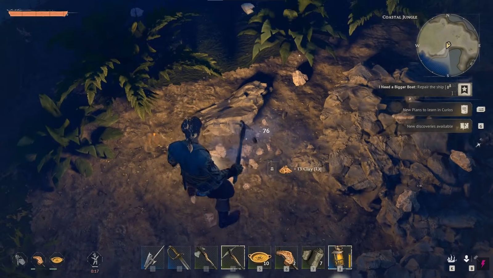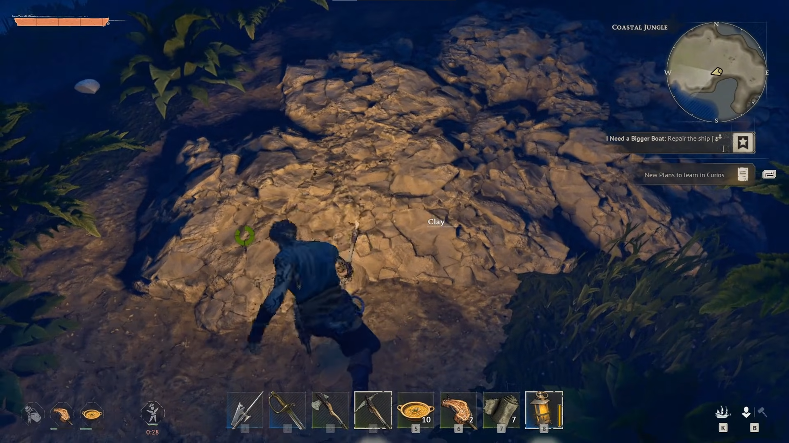 | 3. Поиск | Осмотри дно джунглей | Вручную ищите глиняные узлы, так как игра не отмечает их на вашей карте. |