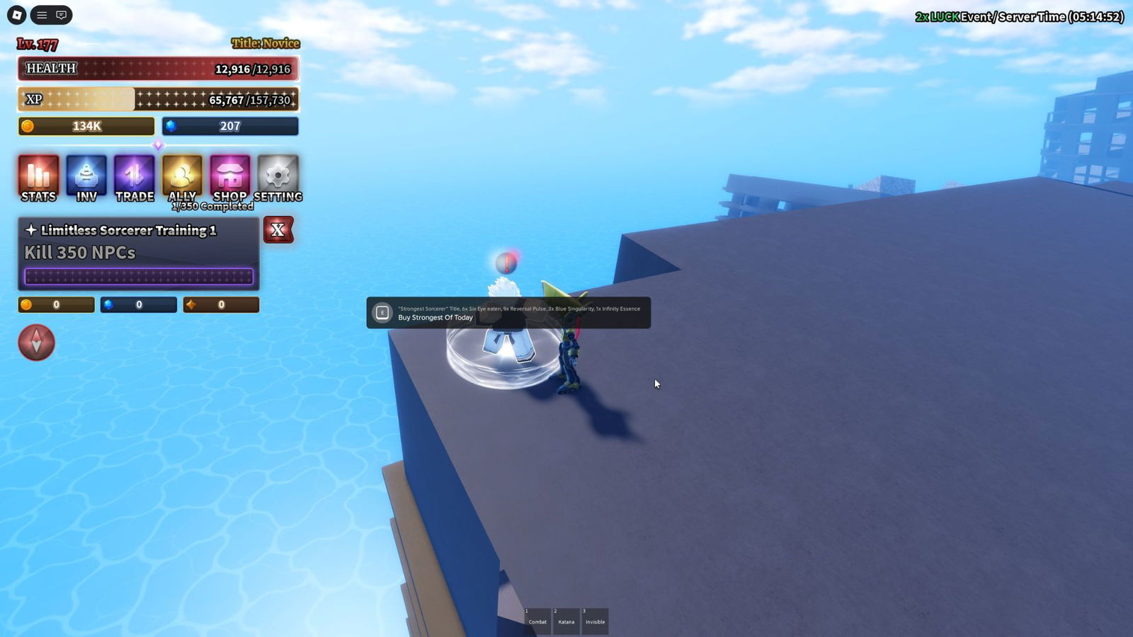 Доступен более мощный стиль боя, основанный на Jujutsu Kaisen, под названием Strongest of Today. Вы можете получить его, обменивая определенные предметы торговцу Strongest of Today, расположенному на острове Синдзюку.