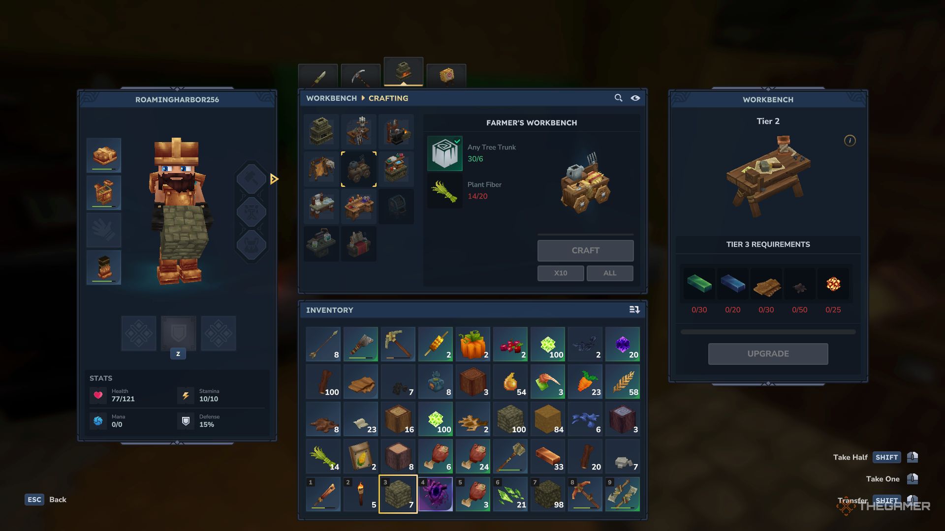 Вы можете создать Верстак Фермера из шести стволов деревьев и 20 растительных волокон.
