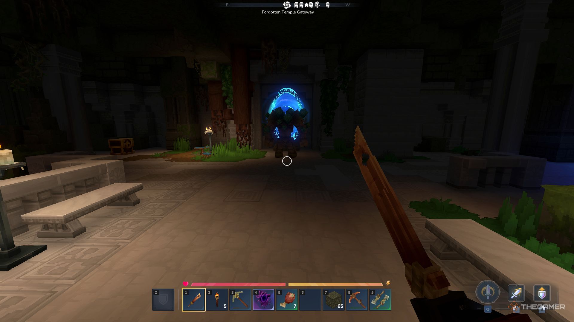 По прибытии просто войдите через главный вход и спуститесь по лестнице. Внизу вы найдете голема, охраняющего портал. Победите голема, а затем пройдите через портал – он приведет вас к Забытому Храму.