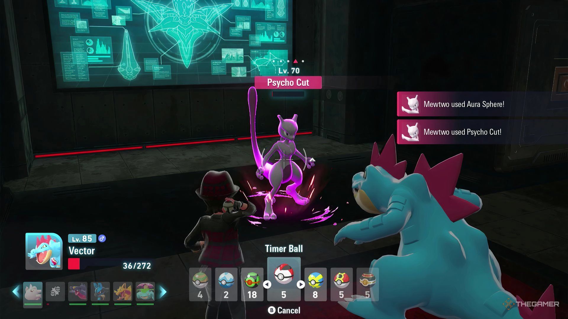 Хотя Мастер-Бол — самый надёжный вариант, Таймер-Болы — ваш лучший выбор для поимки Mewtwo в этой миссии Legends: Z-A. Таймер-Болы становятся эффективнее по мере того, как целевой Pokémon атакует, поэтому, если ваш Pokémon может выдержать около десяти-двенадцати ударов, вы начнёте замечать значительное преимущество.