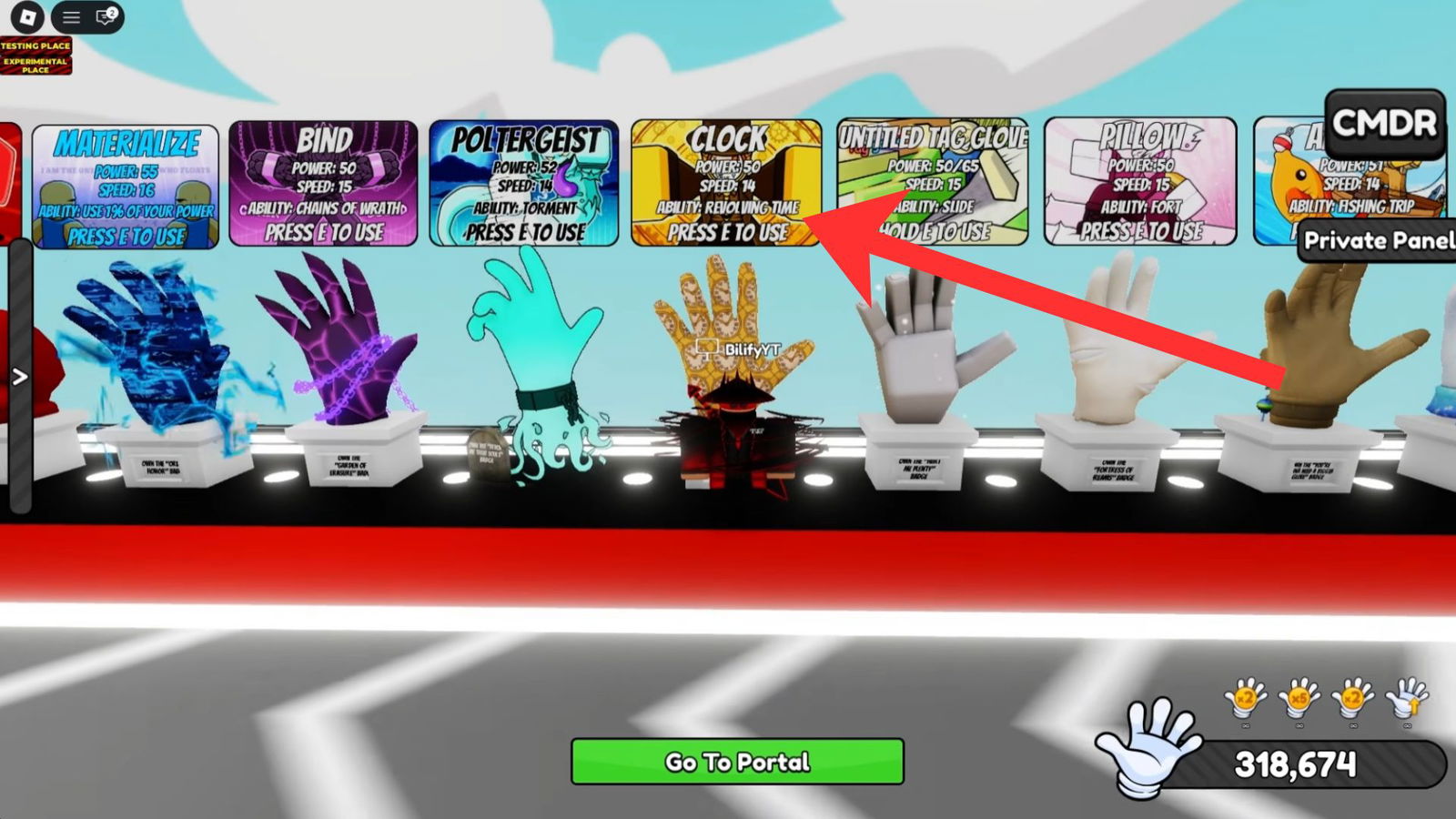 Когда вы начинаете способность Revolving Time, следите за баффом ‘Revive Time’. Как только этот бафф исчезнет и появится новый, быстро прыгайте в пустоту, чтобы получить значок Untimely End. После этого вы можете вернуться в лобби и получить Undead Glove, когда раунд закончится.