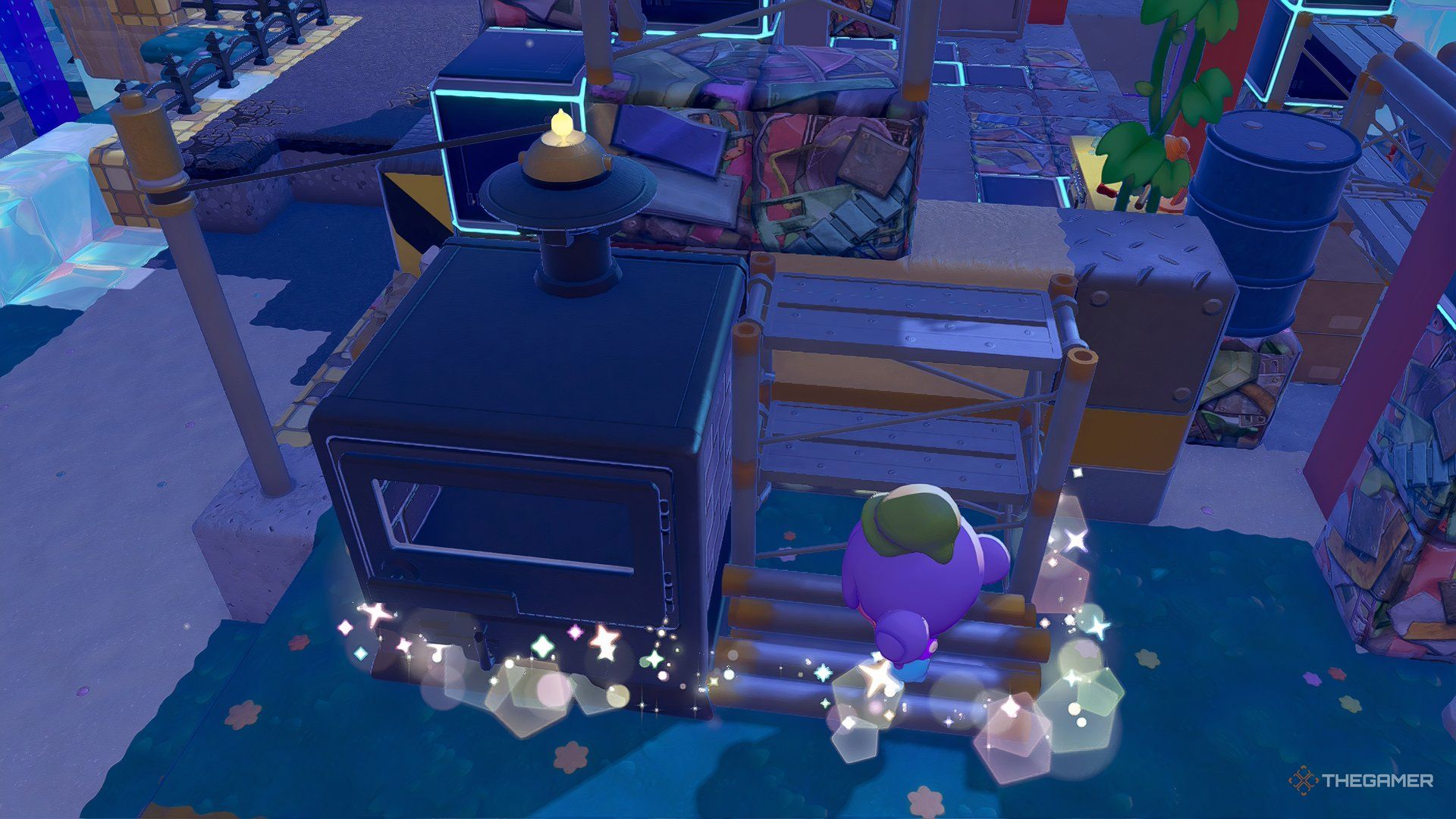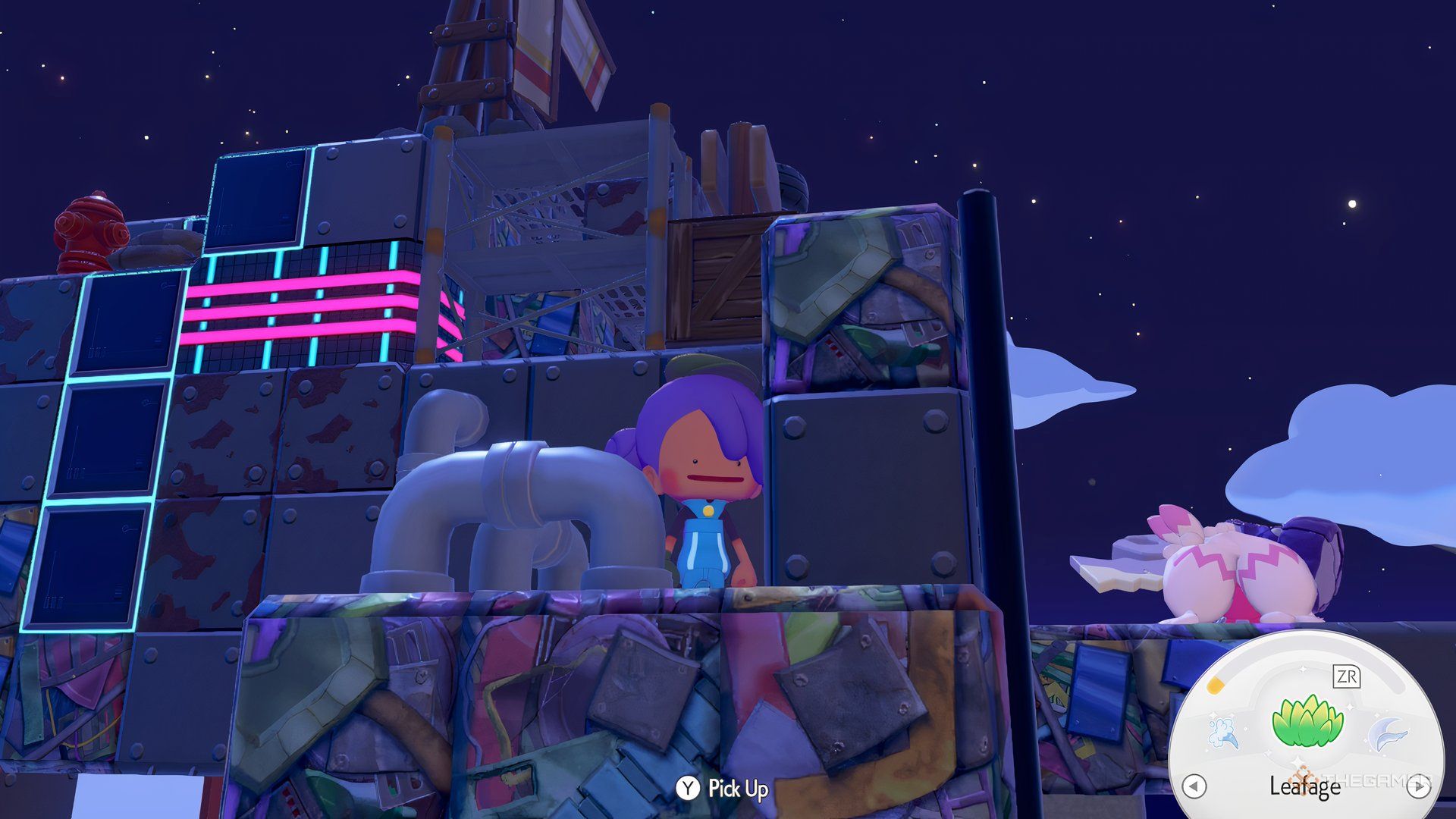 Соберите железные строительные леса и железные трубы с левой стороны башни Tinkaton – вам понадобятся оба, чтобы построить место обитания.