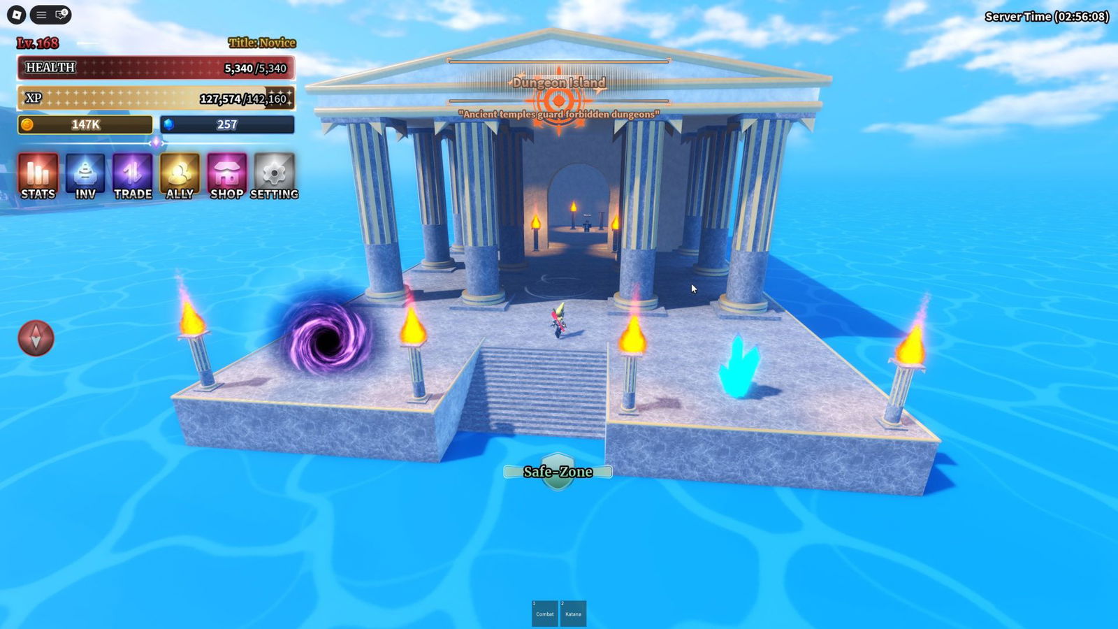 После того, как вы получите Ключ от Подземелья, ваша следующая цель — достичь 5000 уровня. Вам необходимо быть как минимум 5000 уровня, чтобы войти в любое Подземелье. Быстро повышайте уровень, выполняя задания и побеждая врагов, чтобы получать опыт. Как только вы достигнете 5000 уровня, отправляйтесь на Остров Подземелий, используя телепорт, и поговорите с Хранителем Подземелья внутри храма.