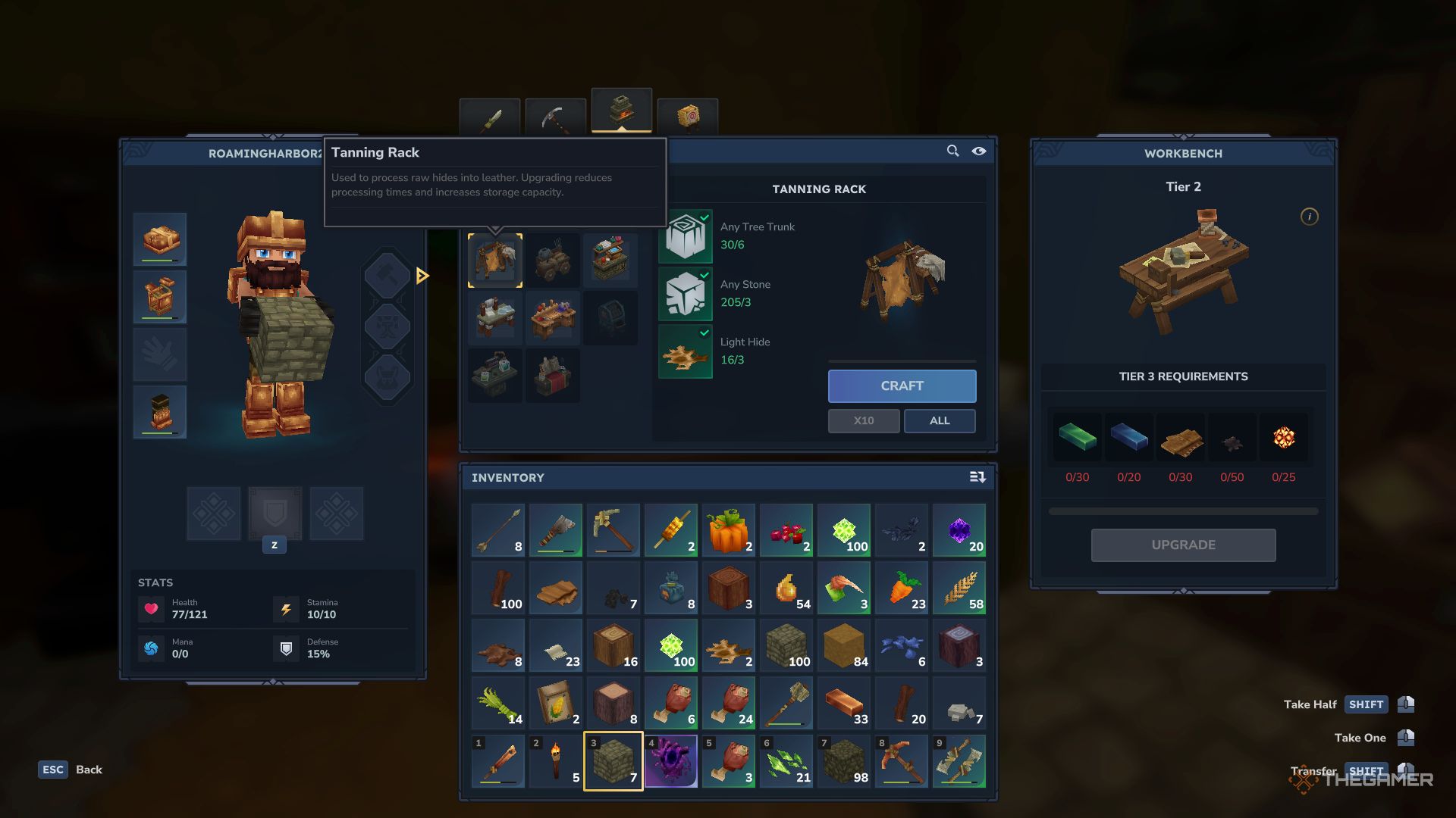 Вы можете превращать шкуры животных в кожу, используя Станок для дубления. Сначала вам нужно будет создать его с помощью Рабочего стола. Для его создания вам понадобятся следующие материалы: