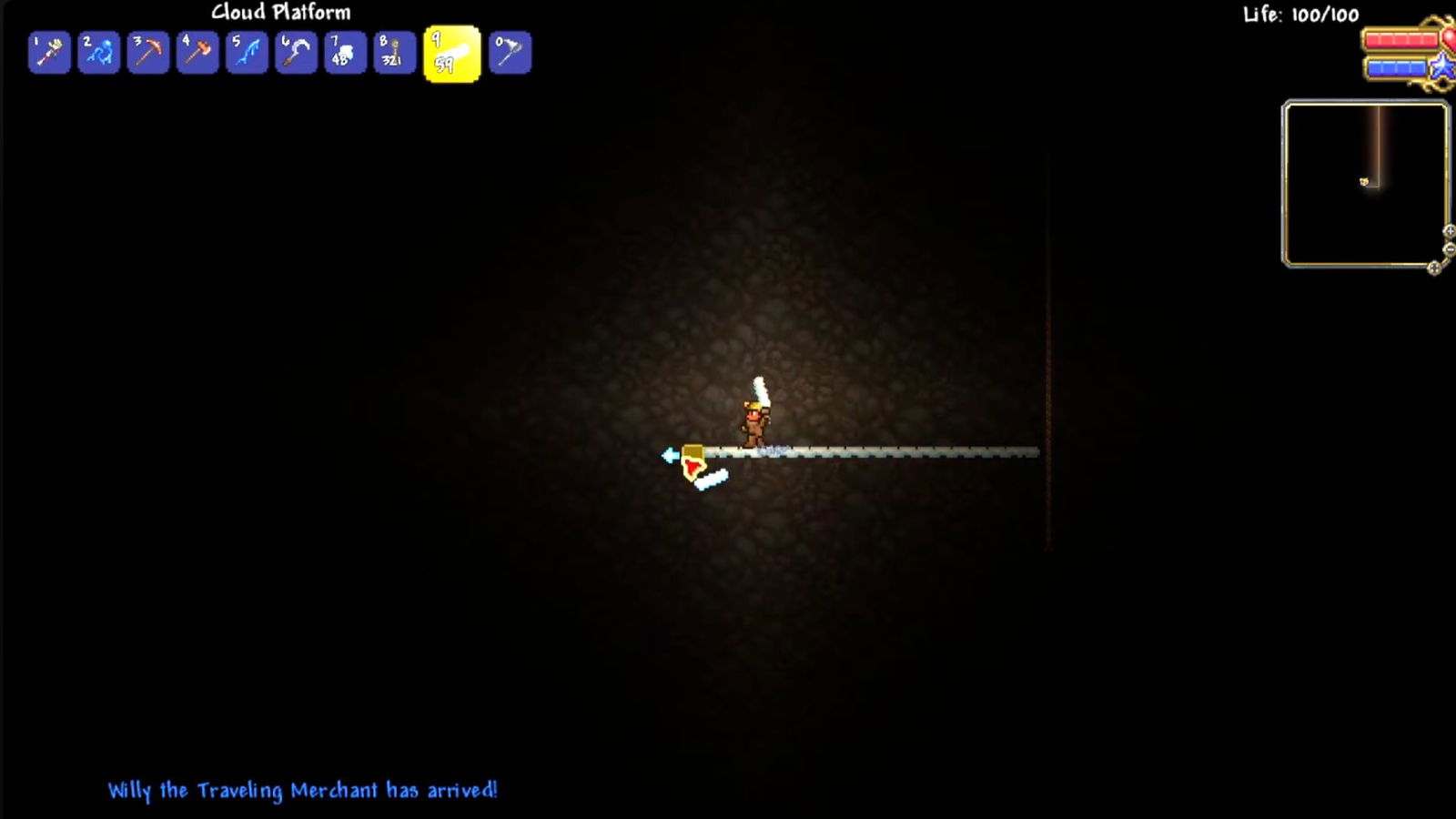 Чтобы добраться до пещеры, купите веревку в магазине и отправляйтесь вниз по острову. Как только вы достигнете серой области под землей, создайте платформу, на которую можно встать. Далее, победите несколько слизней, чтобы получить камни. С помощью этих камней вы можете создать Печь, используя 20 каменных блоков, 4 дерева (любого типа) и 3 факела.