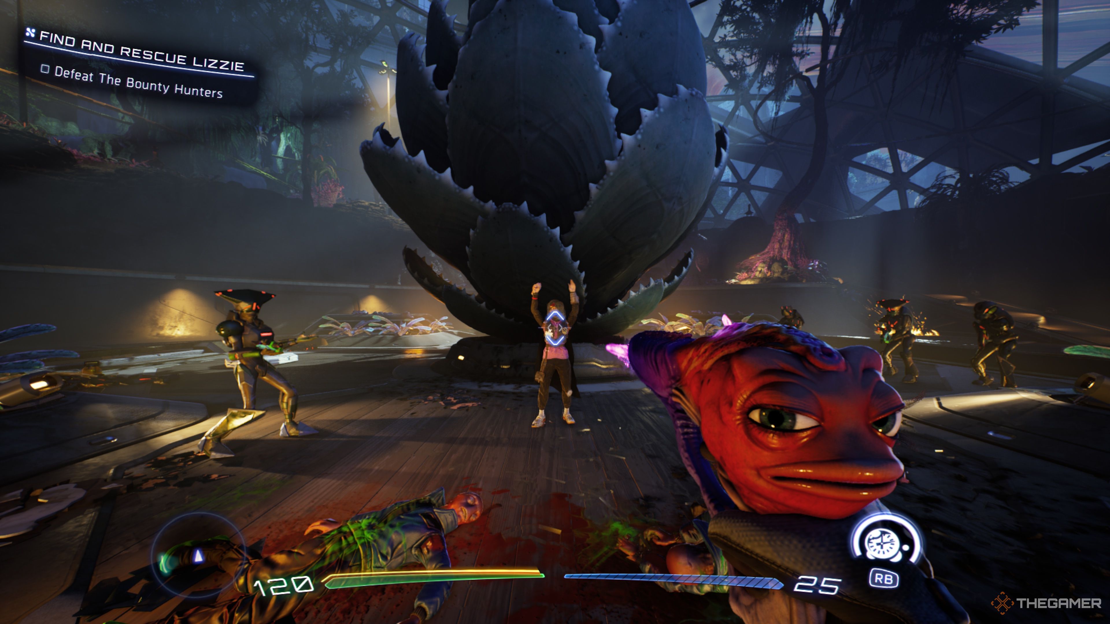 Переместитесь к Лиззи и дождитесь, пока ее окружат охотники за головами.