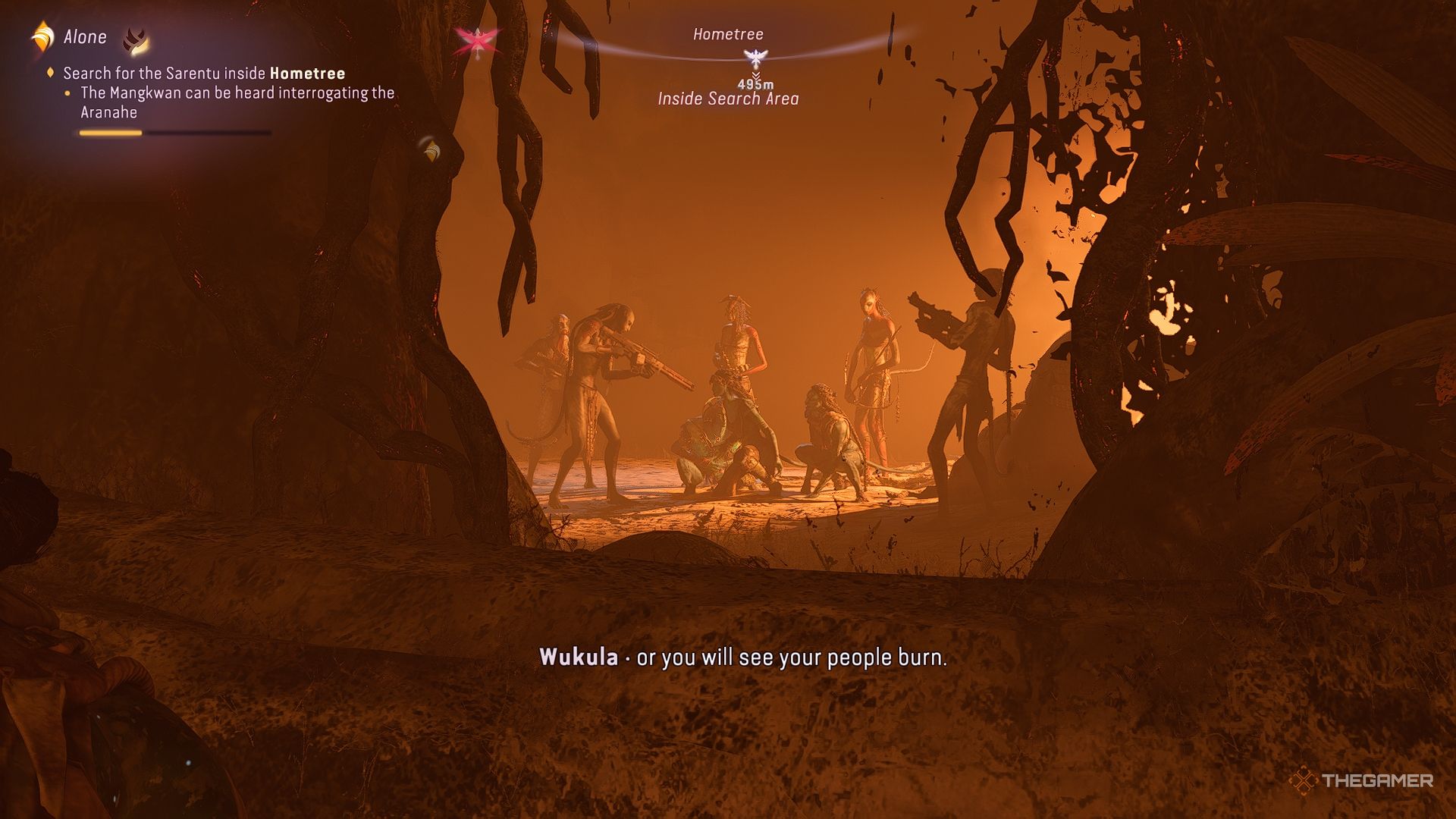 Пока вы продвигаетесь по горящему туннелю, вы услышите, как Ка’сем допрашивает оставшихся Аранахе. Вы можете послушать, но это не изменит их судьбу. Продолжайте двигаться, пока не обнаружите Киранхе на погрузочной платформе. Он атакует Аранахе, и вы должны победить его, либо стрелами, либо в ближнем бою.