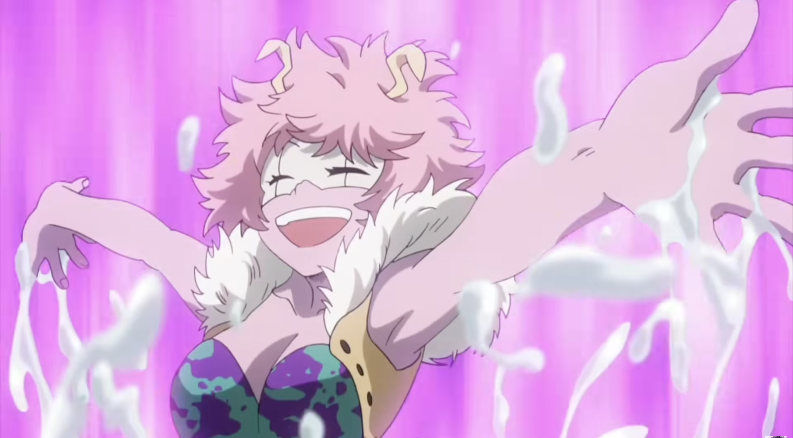 Особенность Мины Ашидо, называемая Acid, позволяет ей производить и контролировать сильную, коррозийную кислоту из своего тела. Она может использовать её для растворения предметов, атаки противников или даже создания скользких областей, чтобы помочь ей быстро перемещаться в бою. Энергичная личность Мины и её акробатические навыки в сочетании с этой способностью делают её универсальным и изобретательным бойцом в Классе 1-A.