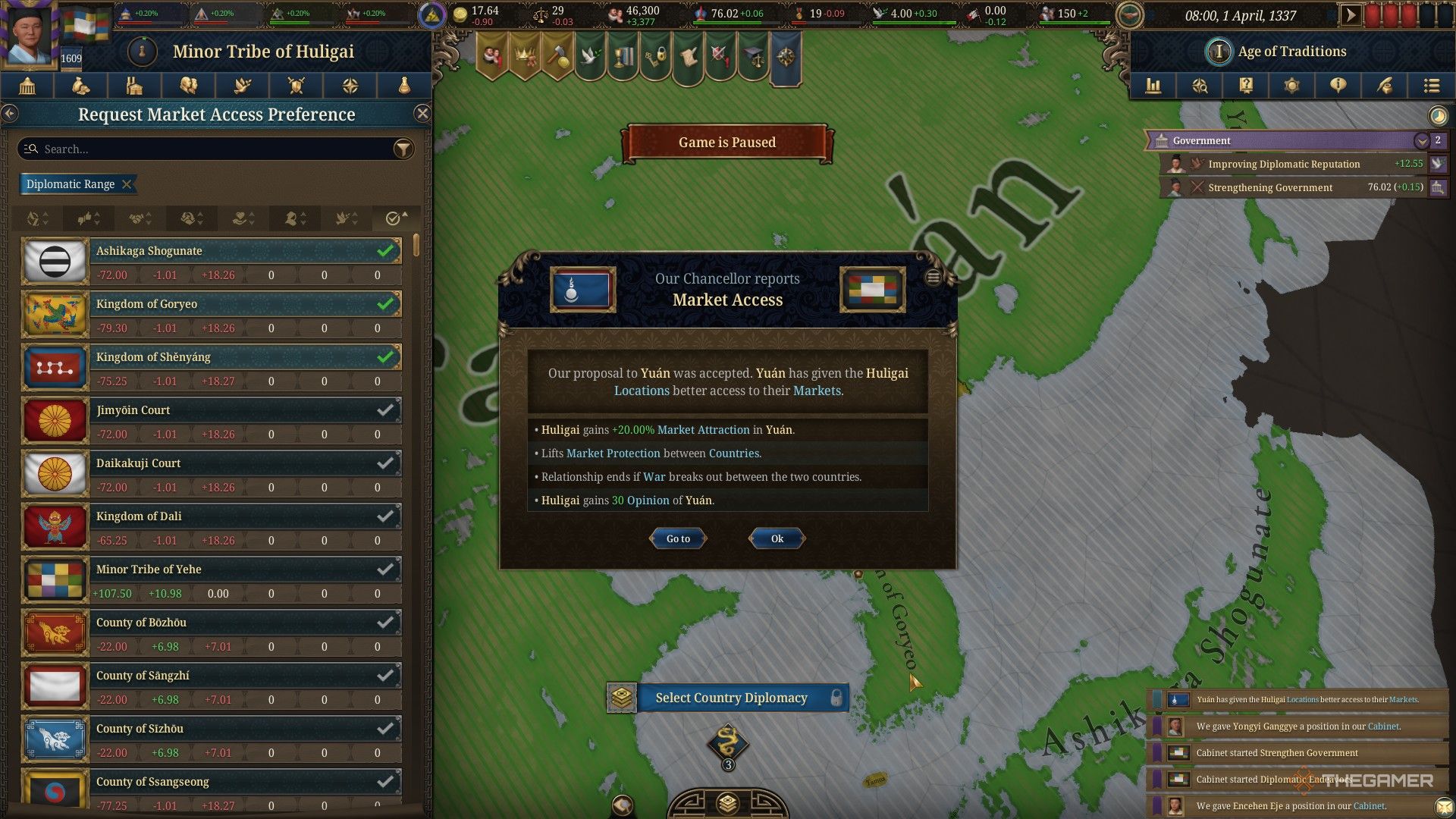 Как только ваша страна присоединится к торговому рынку в Europa Universalis V, вы можете запросить ‘Market Access Preference’ у других стран на этом рынке. К счастью, игра сообщает вам, примет ли страна ваш запрос до того, как вы его отправите, чтобы вы не тратили время на предложения, которые будут отклонены.