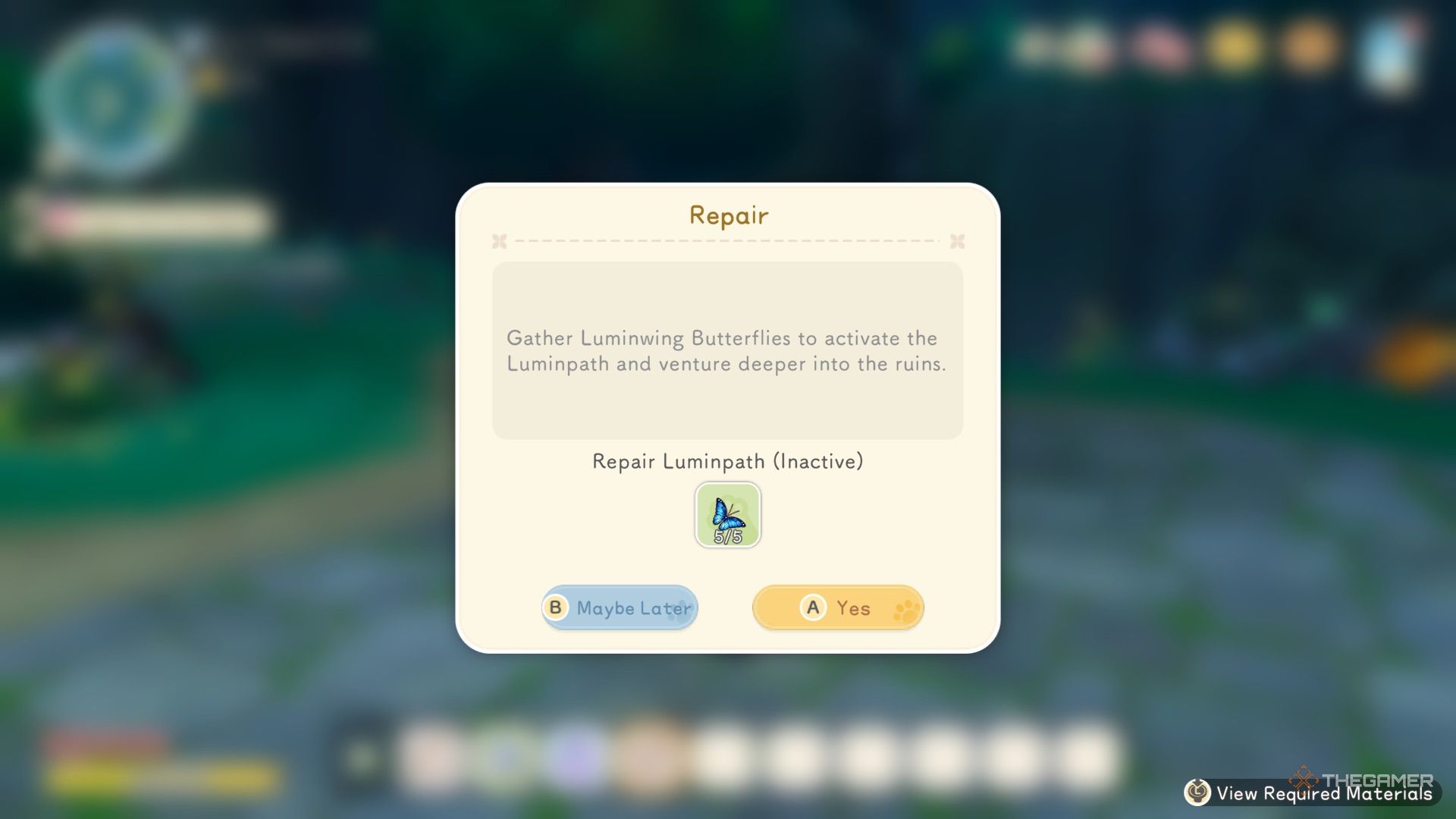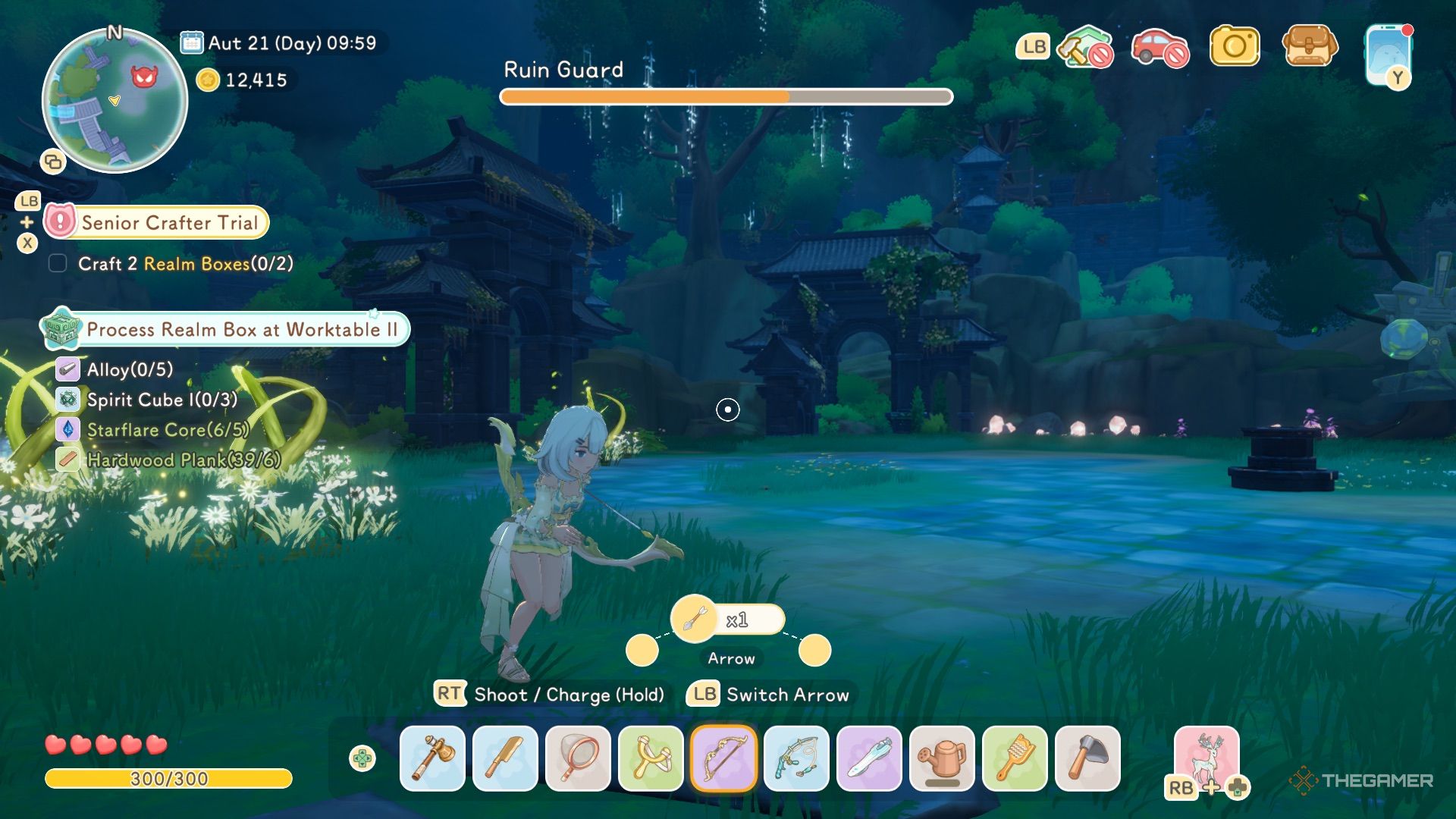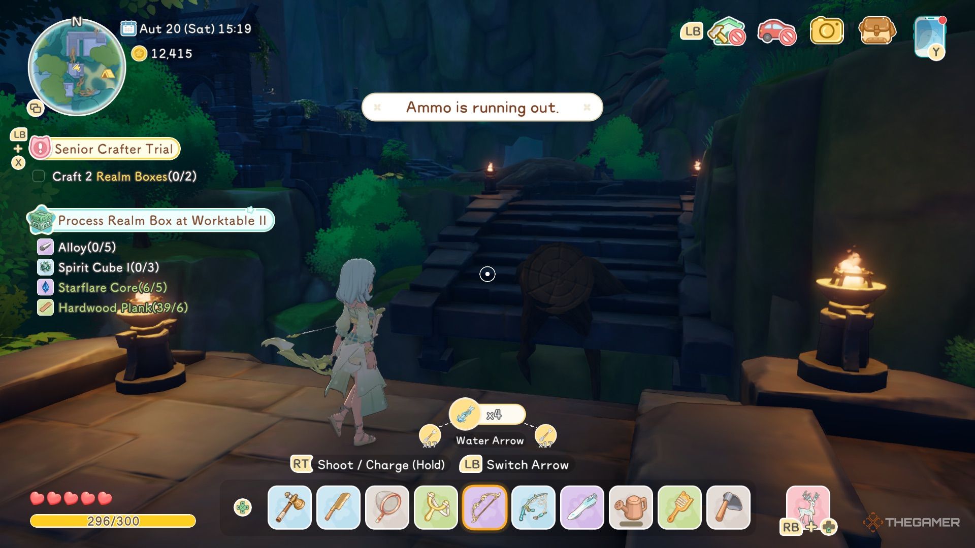 Достигнув вершины Luminpath, вы обнаружите богатую область с большим количеством руды и растений. Соберите как можно больше, а затем продолжайте подниматься, чтобы сразиться с первым боссом, Crystalith.