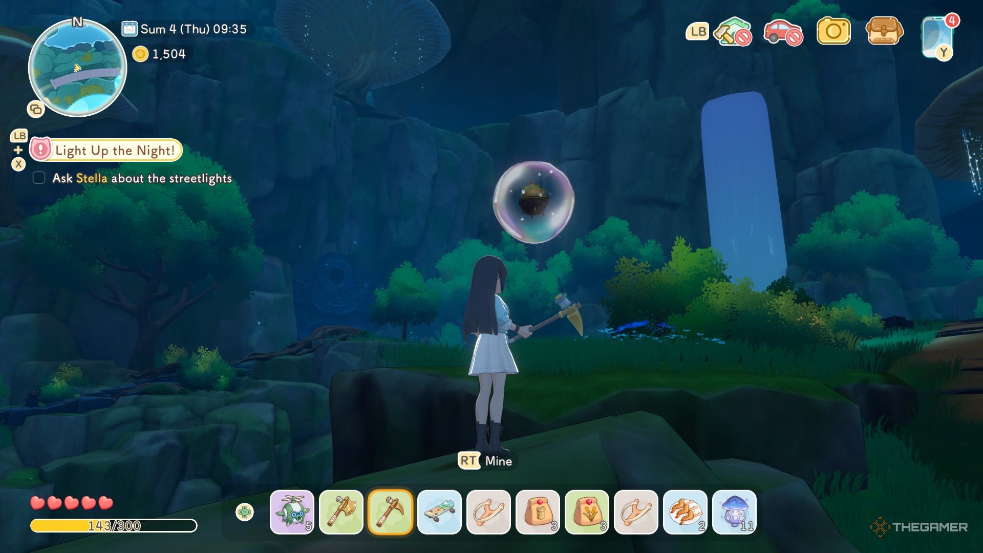 Прыгайте по пузырям, чтобы добраться до лагеря Dreamfall Garden. Как только вы туда попадете, активируйте его, используя 5 Флюоритов – это позволит вам возвращаться сюда, когда вам это понадобится.