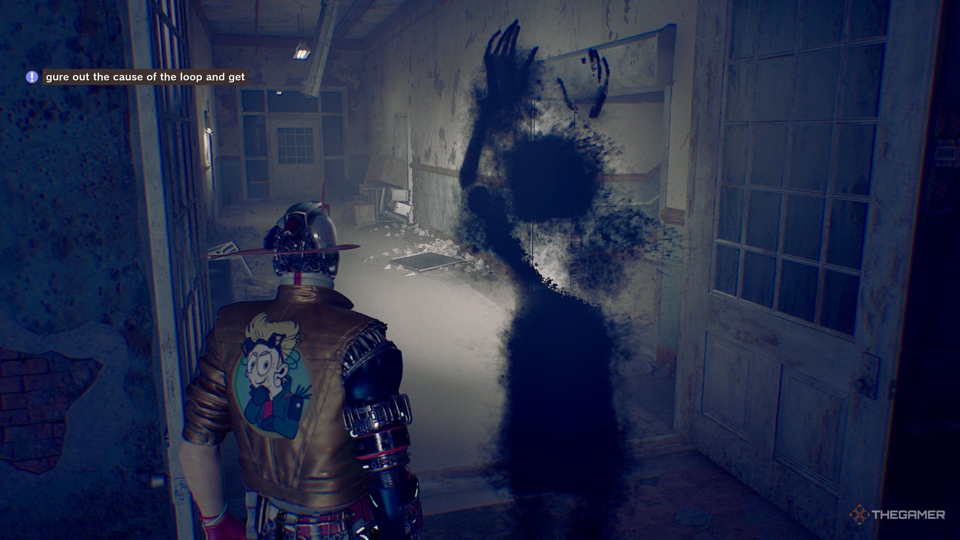 Войдите в прачечную и используйте стиральную машину, затем поговорите с тёмной фигурой в дверном проёме. После этого попробуйте войти в Передовую Исследовательскую Лабораторию, чтобы перезапустить временную петлю.