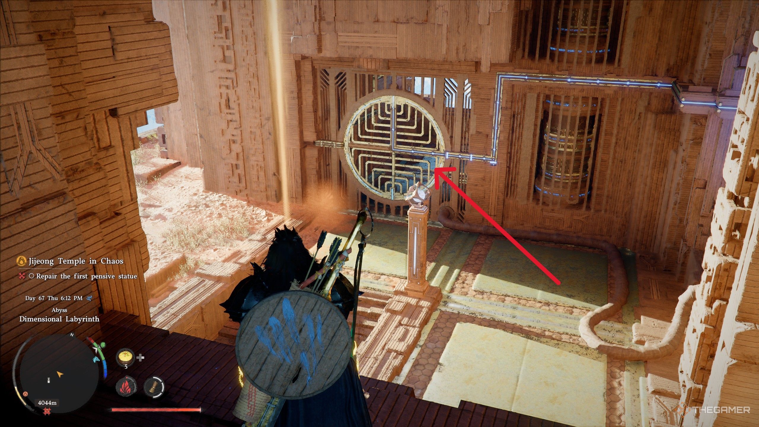 Наконец, повернитесь и спуститесь по лестнице, которую вы создали, пока не дойдете до последней вращающейся решетки. Когда вы используете удар Ладонью Силы на ней, не задерживайтесь – позвольте ей вращаться, это восстановит питание острова и переключатель. Затем вернитесь к главному переключателю, куда вы поместили Ядра Бездны, и используйте последний удар Ладонью Силы, чтобы завершить головоломку.