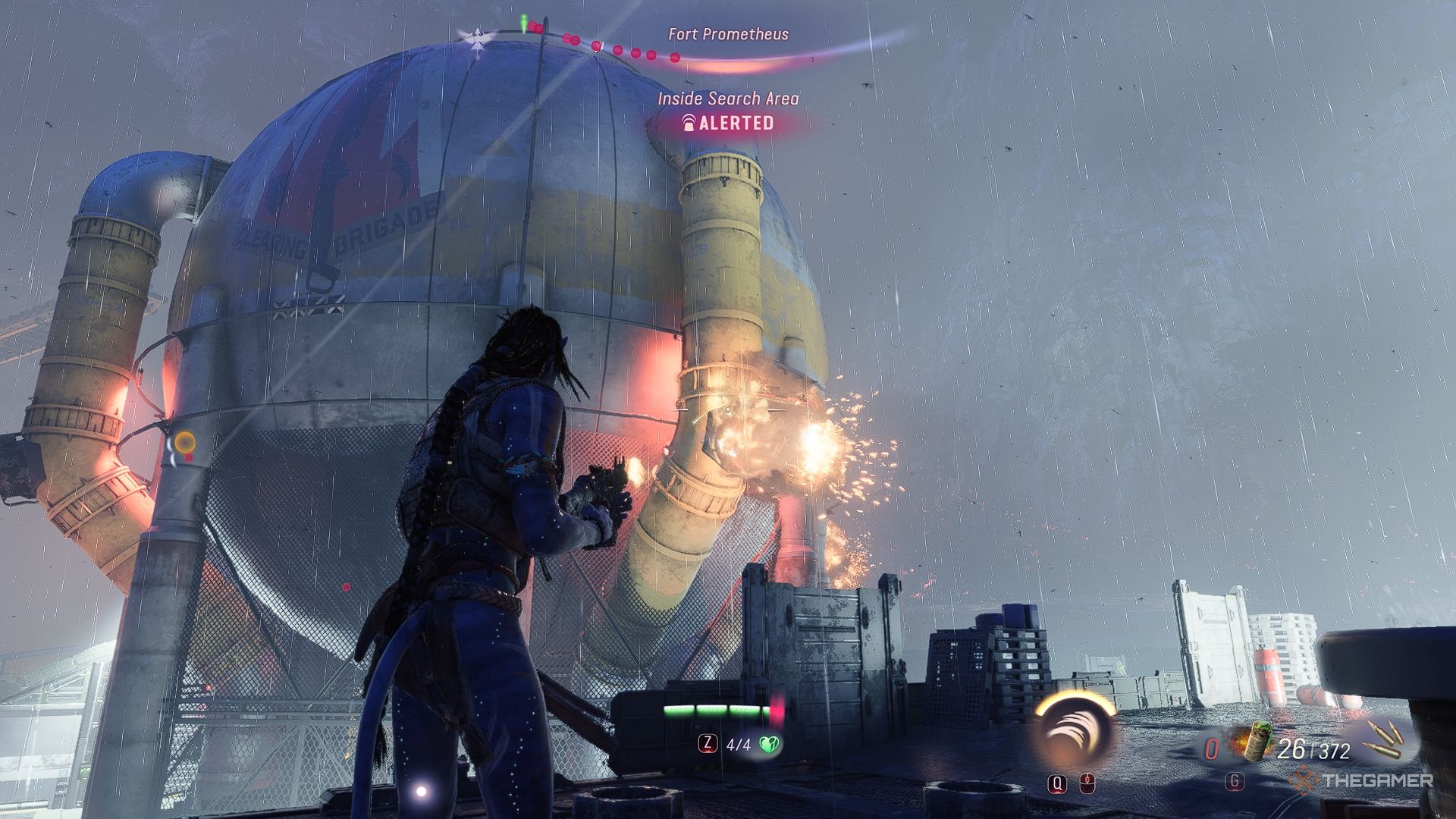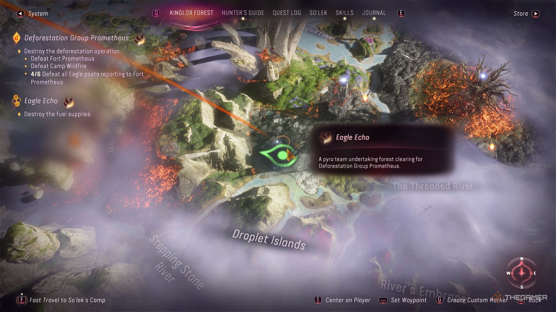 Непосредственно к северу от Лагеря Дикого Пламени, и еще дальше на север, чем остальные лагеря, вы найдете Форт Прометей. Это первая крупная база, с которой вы столкнетесь, и она функционирует как любая другая база в игре. Обратите внимание на то, что говорит Прия, и используйте свои чувства На’ви, чтобы найти свои цели.