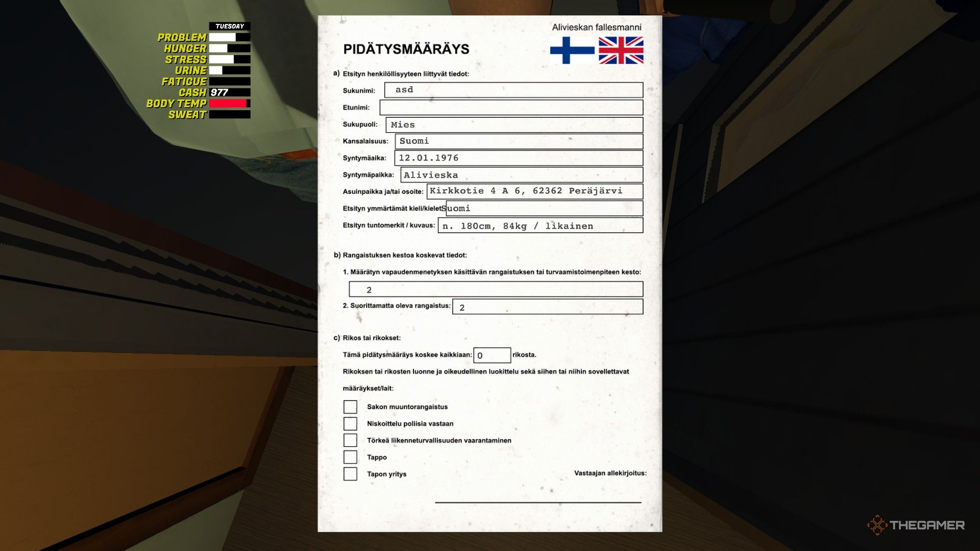 В игре присутствует скрытая система «В розыске», которая активируется при совершении определенных действий. Вы не получите никакого предупреждения о том, что за вами преследуют — вы узнаете об этом только тогда, когда полиция появится у вашей двери, возможно, пока вы пытаетесь заснуть.