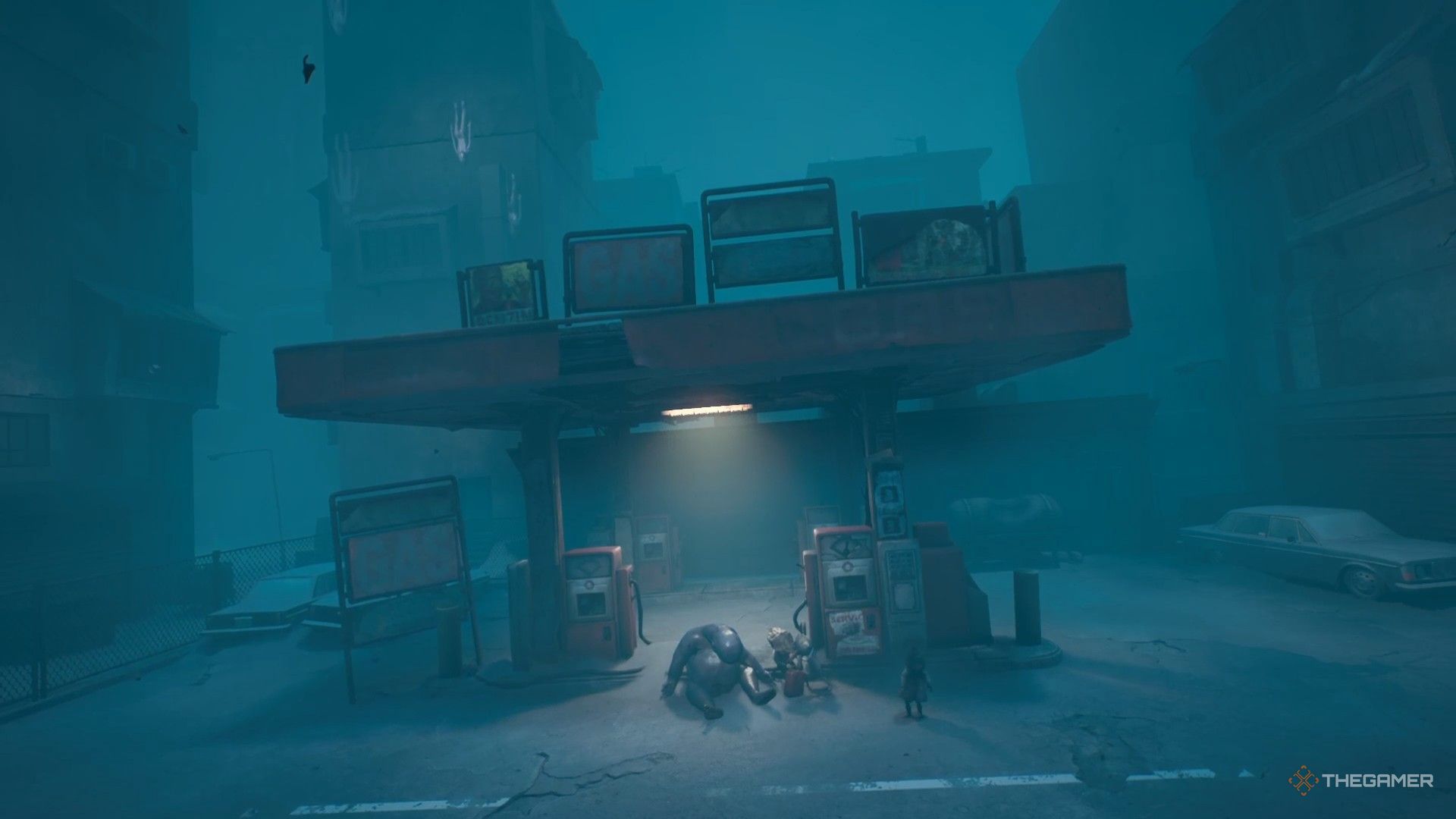 Окей, так что вы оказываетесь на заправке, что хорошо, потому что фургон, который мы используем, чтобы выбраться из этого странного городка, абсолютно пуст! Помните, Сниффер покатался на нем раньше? Вам нужно взаимодействовать с канистрой возле того… ну, большого парня у насосов. Пока сироты наполняют ее, будьте осторожны – сейчас начнётся сумасшествие, и нам нужно будет бежать, как только она заполнится!