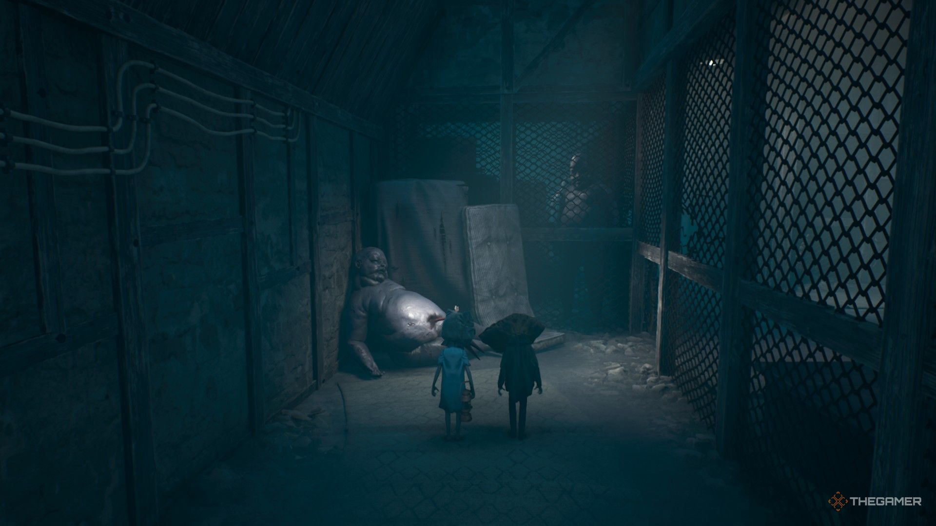 Как только он уйдет, тихо следуйте за Sniffer (но держите дистанцию), чтобы узнать, где удерживают вашего друга. Быстро переместитесь к левой стене клетки через коридор, прежде чем Sniffer вас заметит, и проскользните через небольшое отверстие в заборе чуть левее клетки вашего друга. Внутри вы найдете монтировку – жизненно важный инструмент для этой части Reanimal. Возьмите монтировку, а затем используйте ее, чтобы освободить своего друга из клетки.