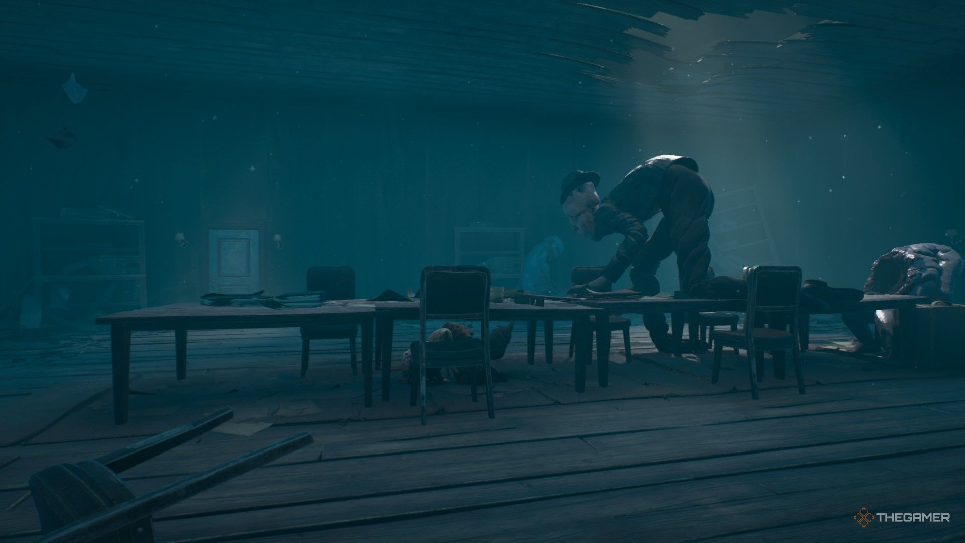 Войдите в кинотеатр в Reanimal и используйте кусачки, чтобы открыть запертую дверь театра. Внутри на экране демонстрируется черно-белый фильм для переполненного зала, но пол поврежден. Осторожно пробирайтесь через ряды кресел к задней части театра.