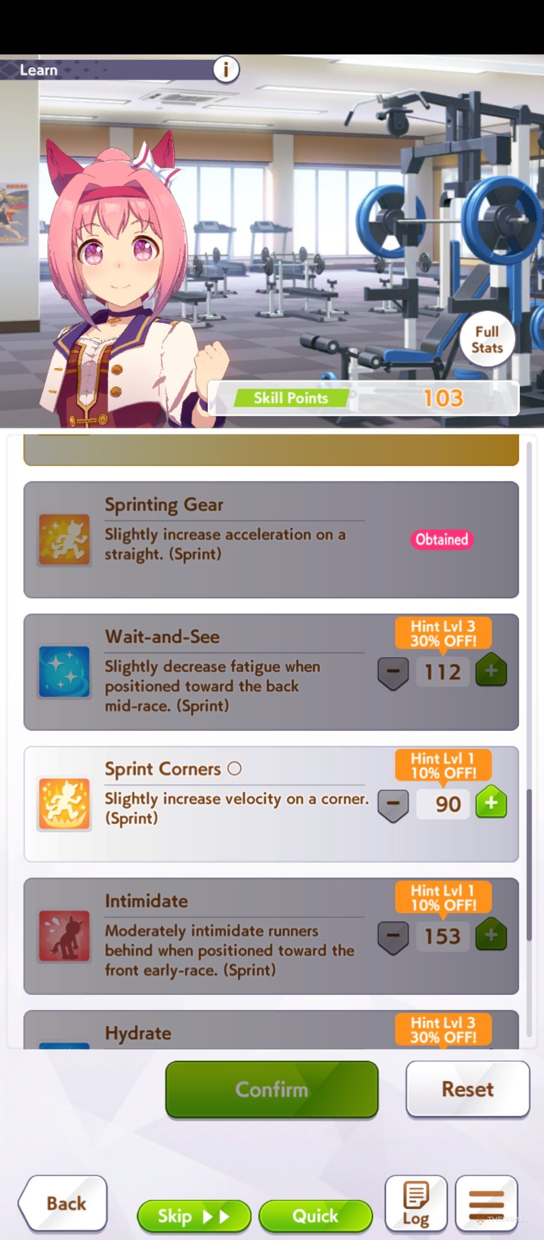 У вас будет более чем достаточно времени, чтобы улучшить характеристики вашей лошади благодаря дополнительным дням, особенно когда вы сосредоточены на первоначальных целях. Продолжайте тренировать её, чтобы сбалансировать характеристики, поскольку времени на это будет меньше, когда начнутся основные гонки. Навыки могут кардинально изменить ситуацию для Хару Урара на финальном отрезке, поэтому мы настоятельно рекомендуем значительно повысить её характеристику сообразительности.