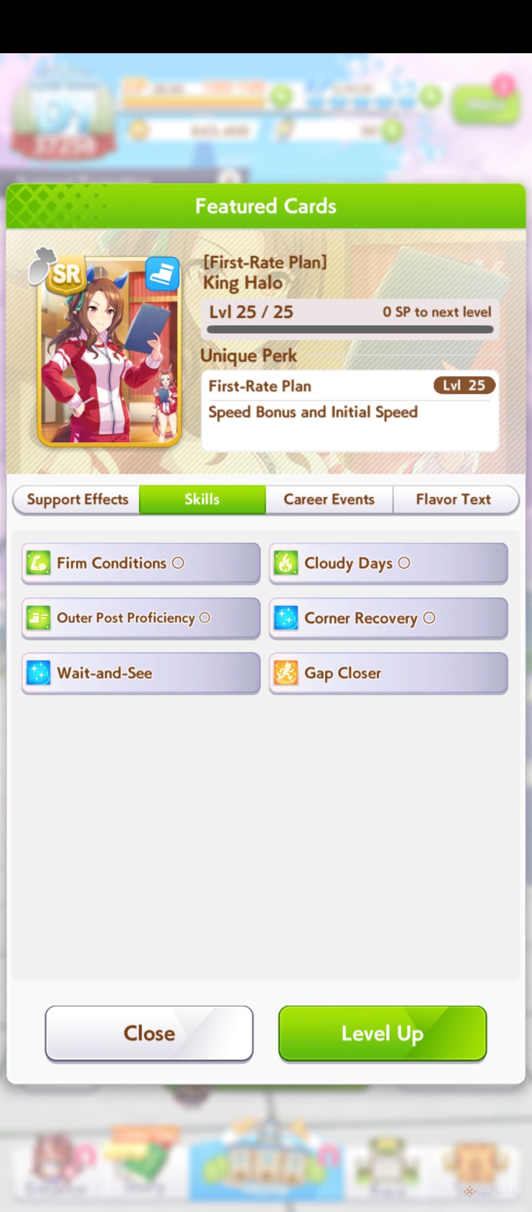 | King Halo SR | Скорость | Эта карта хорошо сочетается со спринтерскими способностями Хару Урары, учитывая, что она активирует навыки для спринтерских гонок, а также помогает увеличить скорость и мощность. |