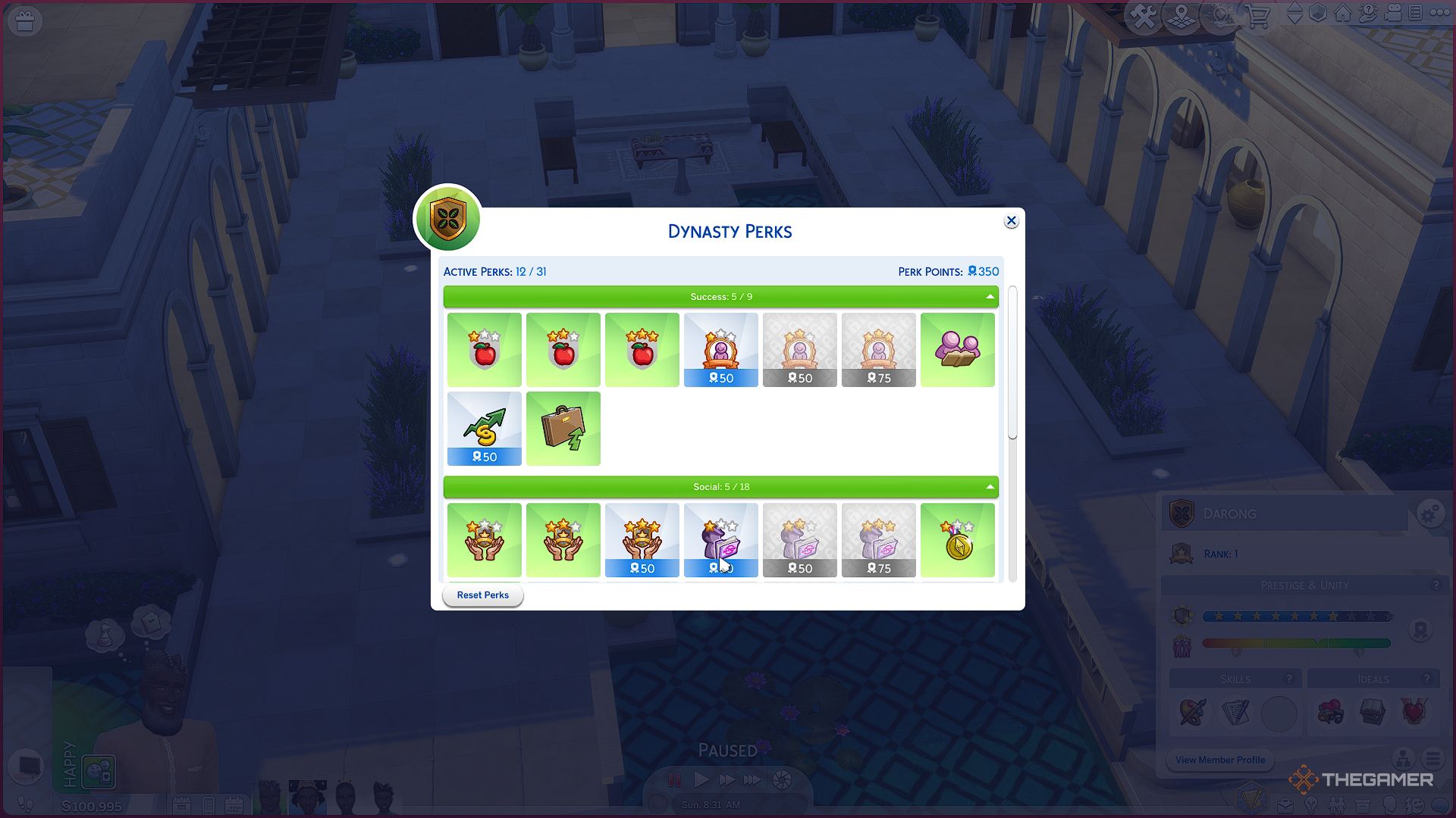 Члены Династии будут иметь более высокие шансы раскрыть секреты других Симов, столкнутся с более короткими Скандалами и получат снижение платы от Информационного Брокера. |