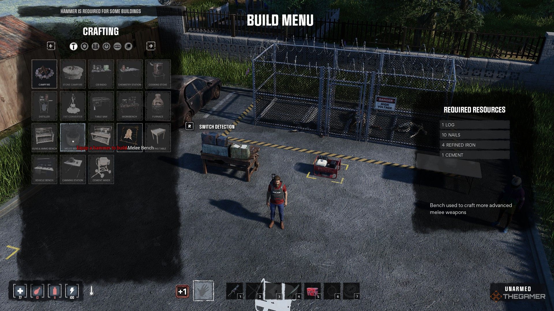 Чтобы получить Брёвна, вам нужно будет рубить деревья с помощью Топора. Гвозди можно найти в машинах, внутри зданий или изготовить из Металлолома. Чтобы создать Очищенное Железо, вам нужно переплавить три Железа в Печи. И Цемент можно найти только в таких местах, как Гаражи.