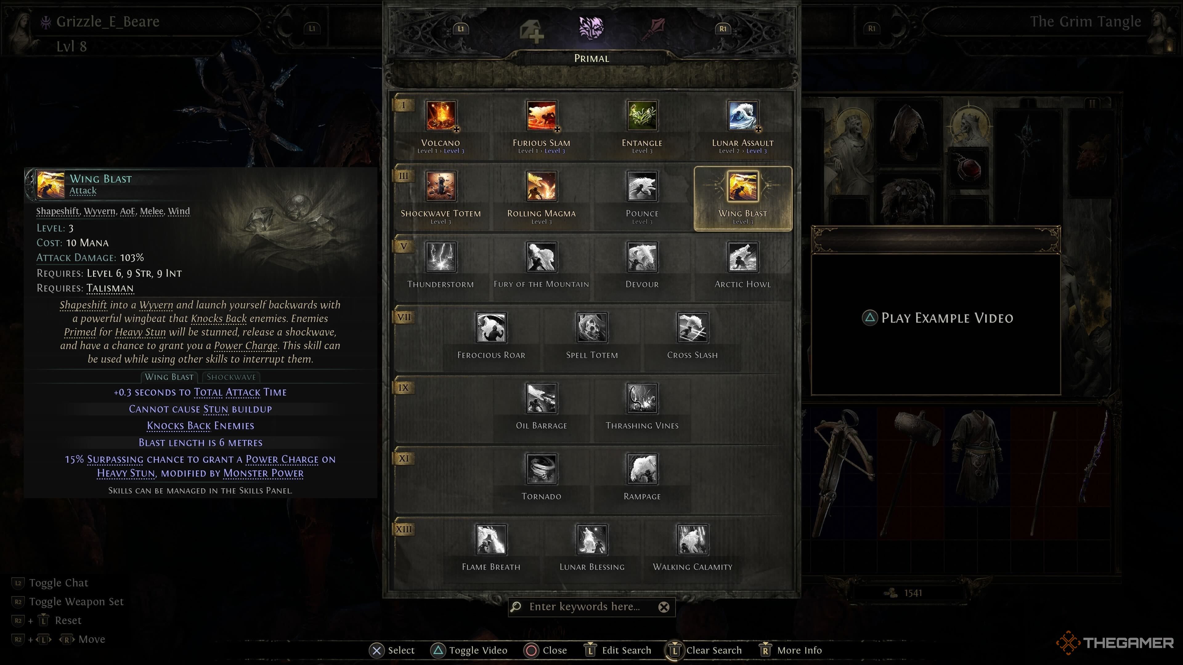 Вы все еще можете использовать способности, которые вы развили в форме медведя, но эта сборка фокусируется на нанесении урона электричеством. Большинство предложенных заклинаний и экипировки усилят ваши электрические атаки. Вы можете выбрать Виверна для своего Талисмана, что позволит вам переключаться между тремя формами, когда вам захочется.