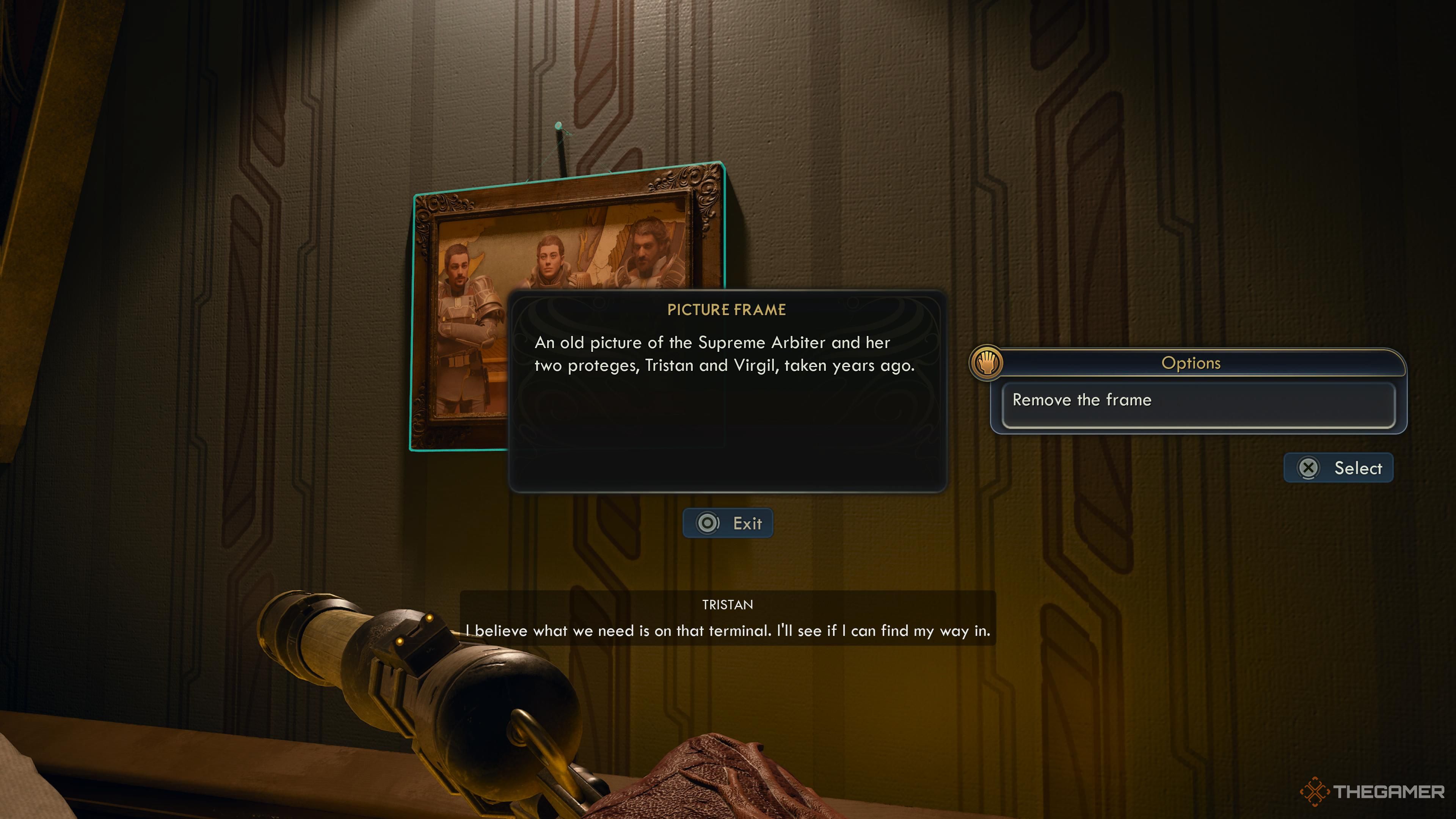 Когда вы доберетесь до офиса Верховного Арбитра, Тристан попросит вас осмотреться в поисках улик, пока он обыскивает компьютер. Вы можете проверить несколько объектов в комнате, но важный из них будет отмечен на вашем экране – оставьте его на потом. Вот список всего остального, что вы можете исследовать: