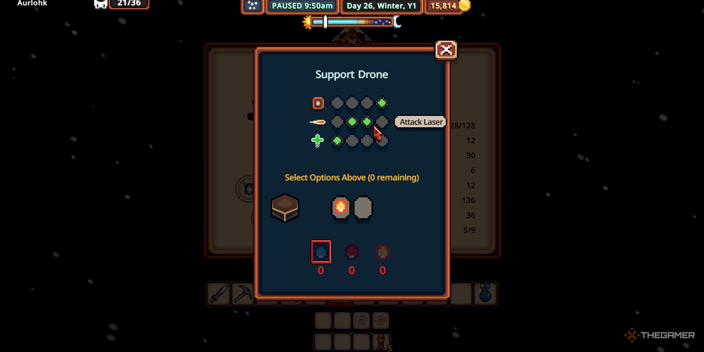 Дрон служит удобным компаньоном в игре, подобно домашнему питомцу. Вы можете купить его в магазине Сида по цене 2500 золотых по окончании игрового сезона. Это лояльное устройство предлагает вам свободу выбора между тремя различными функциями: увеличение емкости инвентаря, использование атакующего лазера или активация исцеляющей ауры.