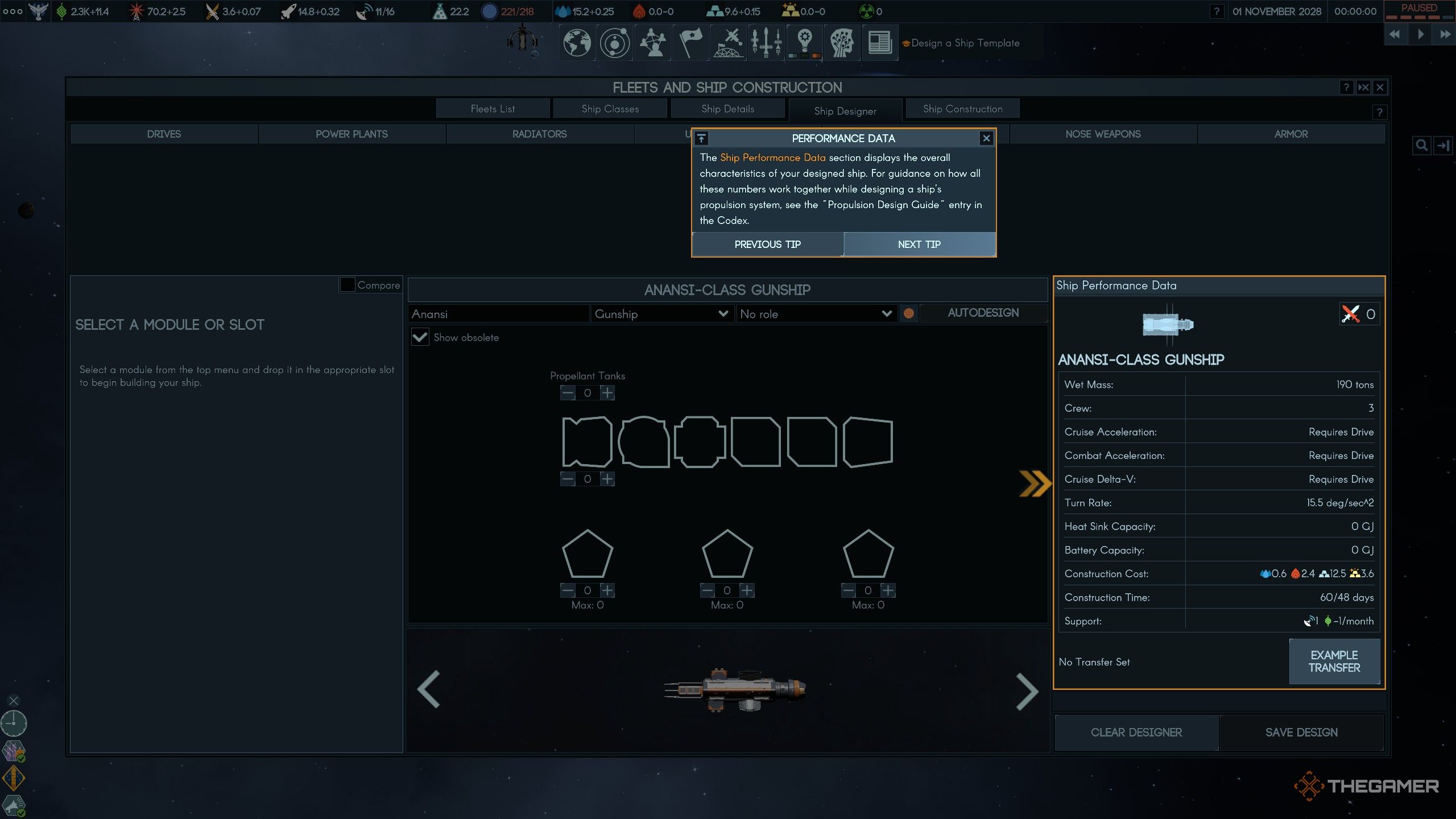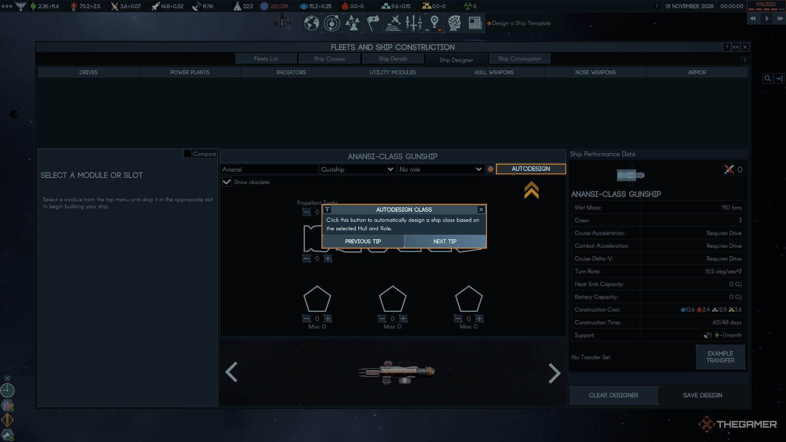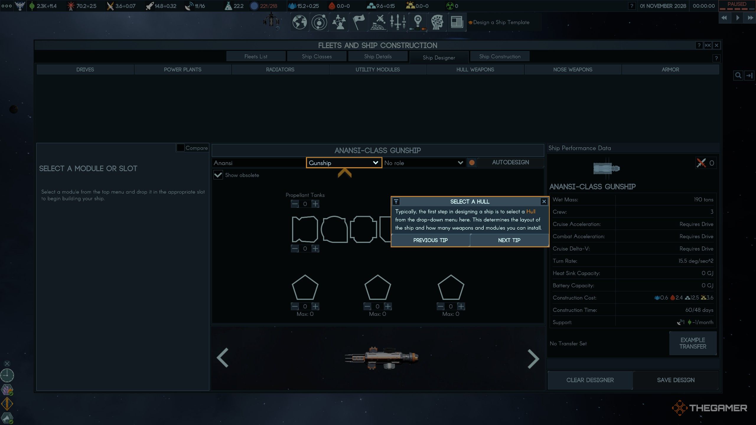 После постройки Космопорта вы можете начать проектировать корабли там. Но типы кораблей, которые вы можете построить, зависят от модулей, которые вы разблокировали посредством исследований.