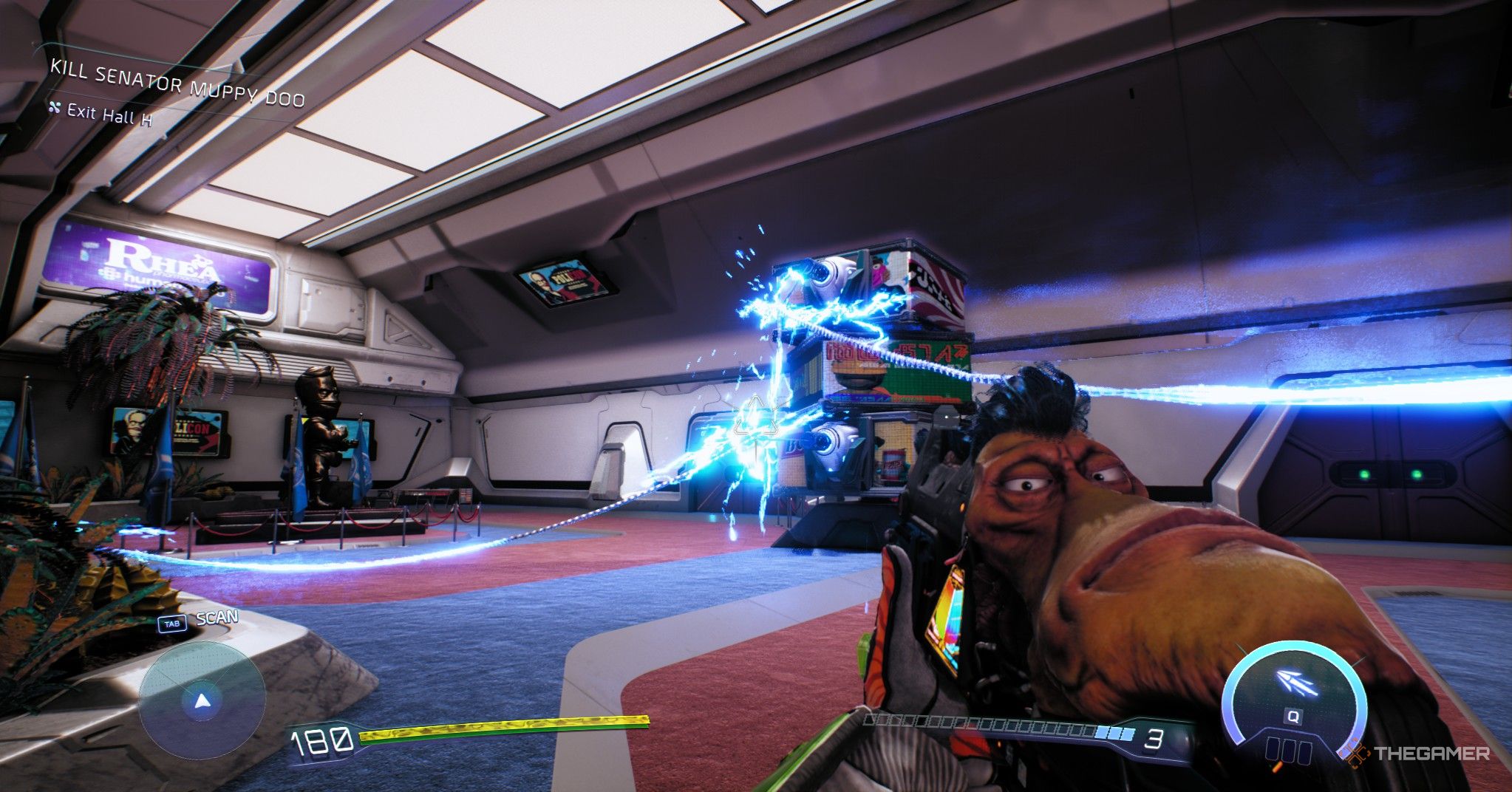 В High on Life 2 сенатор Муппи Ду является не просто целью с ценой за его голову – он полноценный политик, произносящий речи, охраняемый службой безопасности и продвигающий очень подозрительный наркотик. Игра использует много сатиры, чтобы высмеять политику, жадность корпораций и тех кажущихся дружелюбными представителями власти, которым нельзя доверять.
