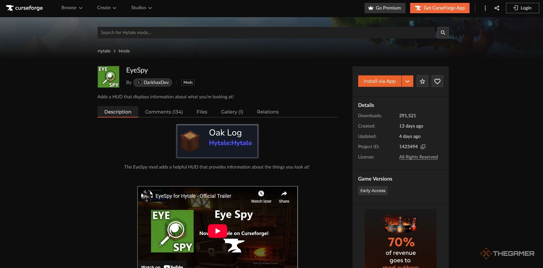 Далее нам понадобится мод для улучшения нашей игры. Хорошим примером является EyeSpy, созданный DarkhaxDev. По сути, он предоставляет вам подробную информацию обо всех предметах и вещах, которые вы обнаруживаете в игровом мире.