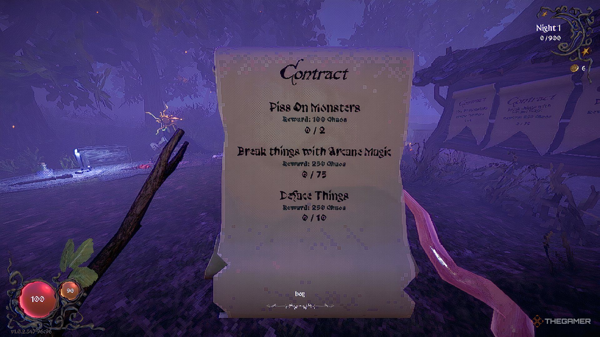 | Чихайте на монстров. | 0/3 | 100 Очков Хаоса | Для этого вам потребуется приобрести и оснастить Уродливую Палочку, чтобы получить доступ к заклинанию Апчхи. Примените Апчхи к монстрам в замке три раза, чтобы выполнить этот контракт. |