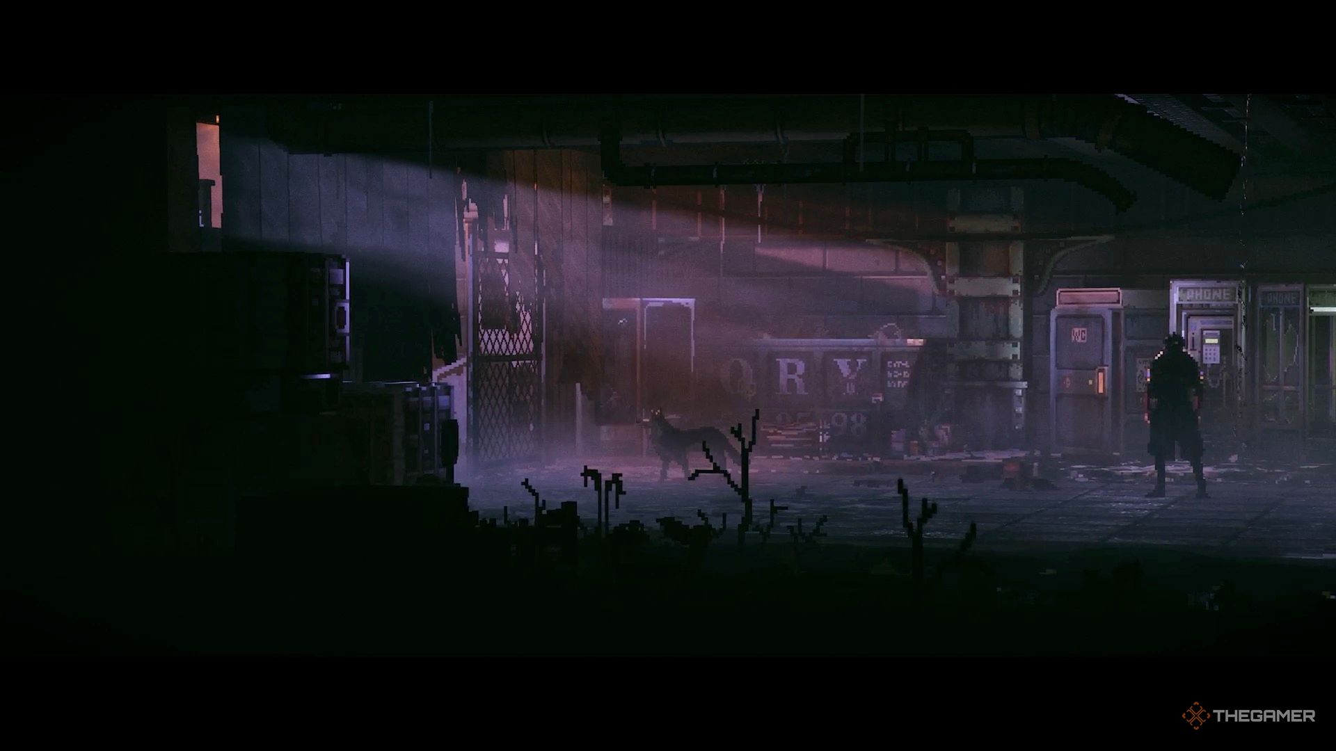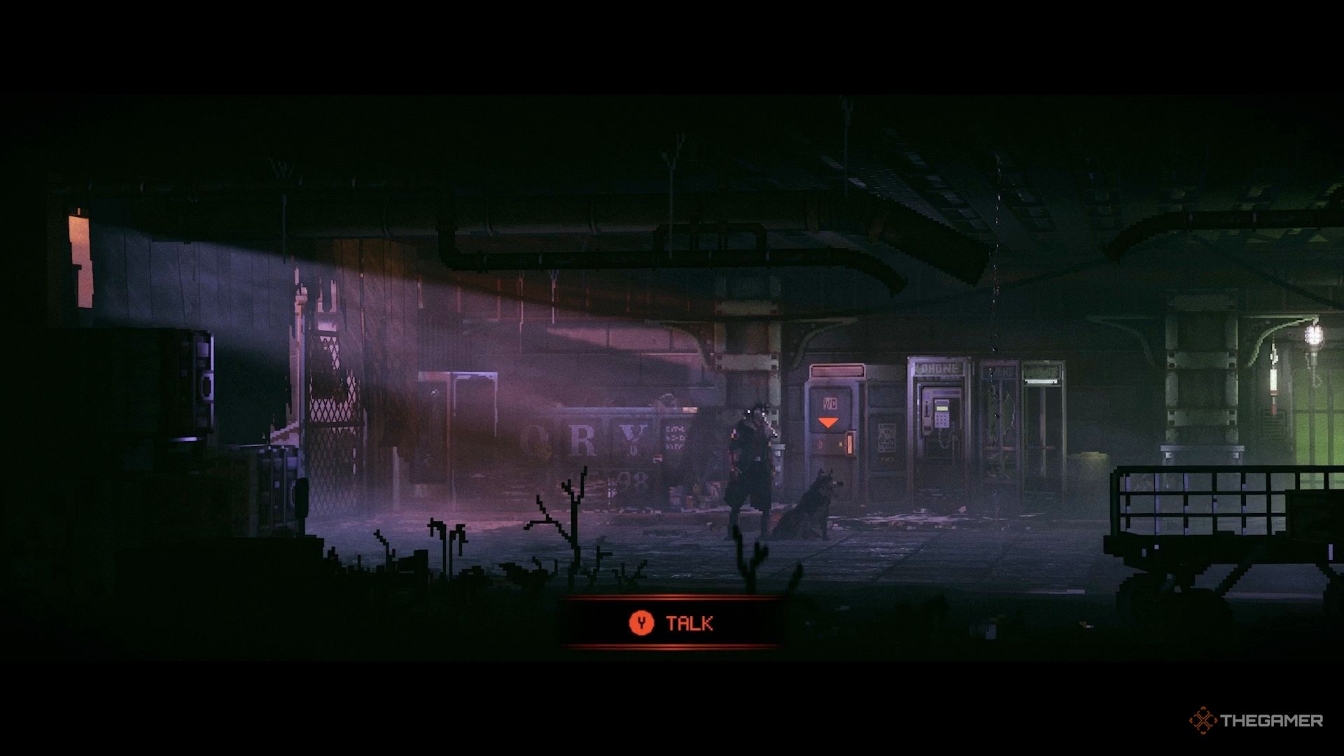 Экскалибур – собака! Вы можете найти его, пройдя через отверстие в заборе справа от станции. Когда вы его найдете, попробуйте поговорить с ним – хотя он не может ответить, вы быстро поймете, что он голоден и хочет еды.