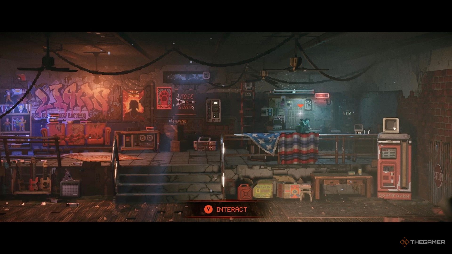 Когда вы войдете в убежище, взаимодействуйте с картой в углу комнаты.
