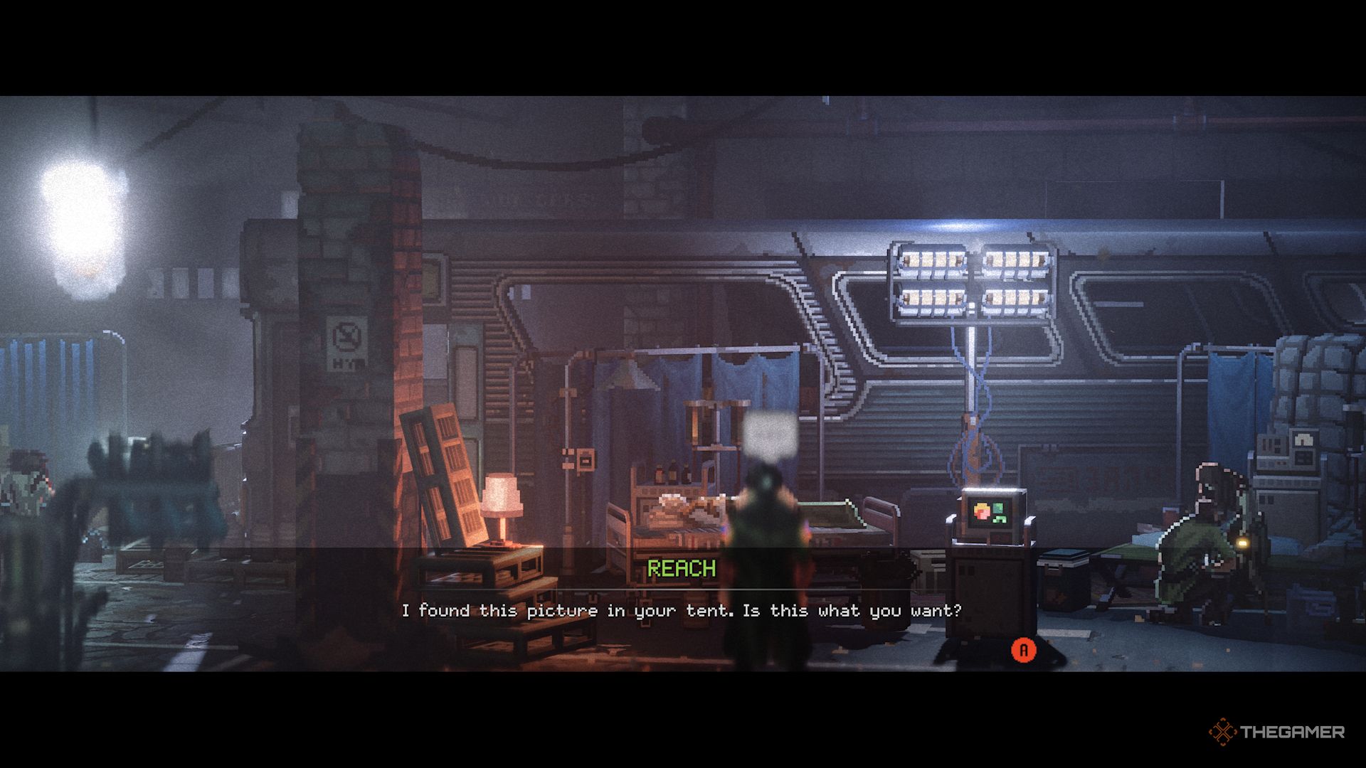 Подойдя к палатке, вы можете прочитать записку и обыскать кровать. Внутри кровати вы обнаружите запертый ящик, содержащий то, что вам нужно.