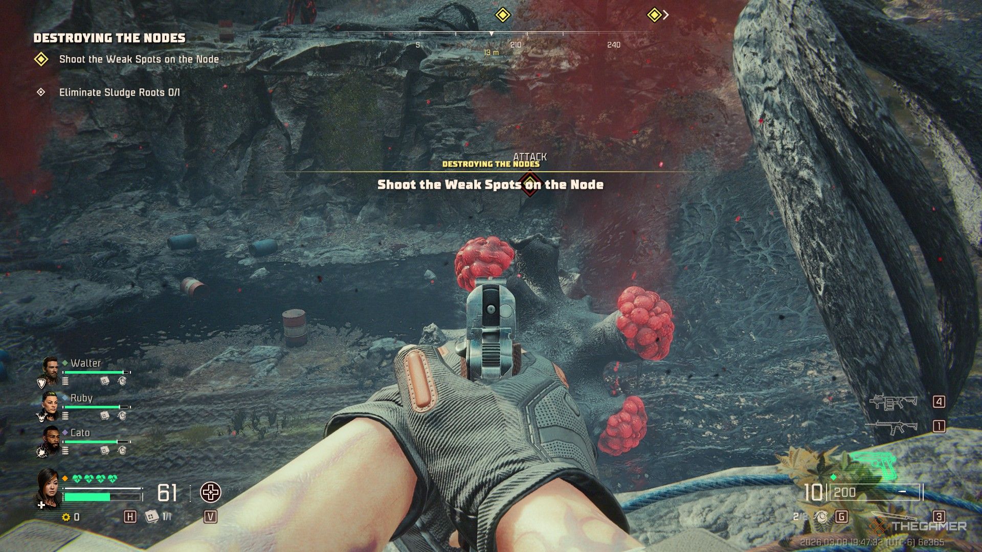 Второй узел отличается от первого. Вам не нужно стрелять в слабые места – просто подойдите к нему и взаимодействуйте. Затем следуйте инструкциям, которые появятся на экране, чтобы уничтожить его.