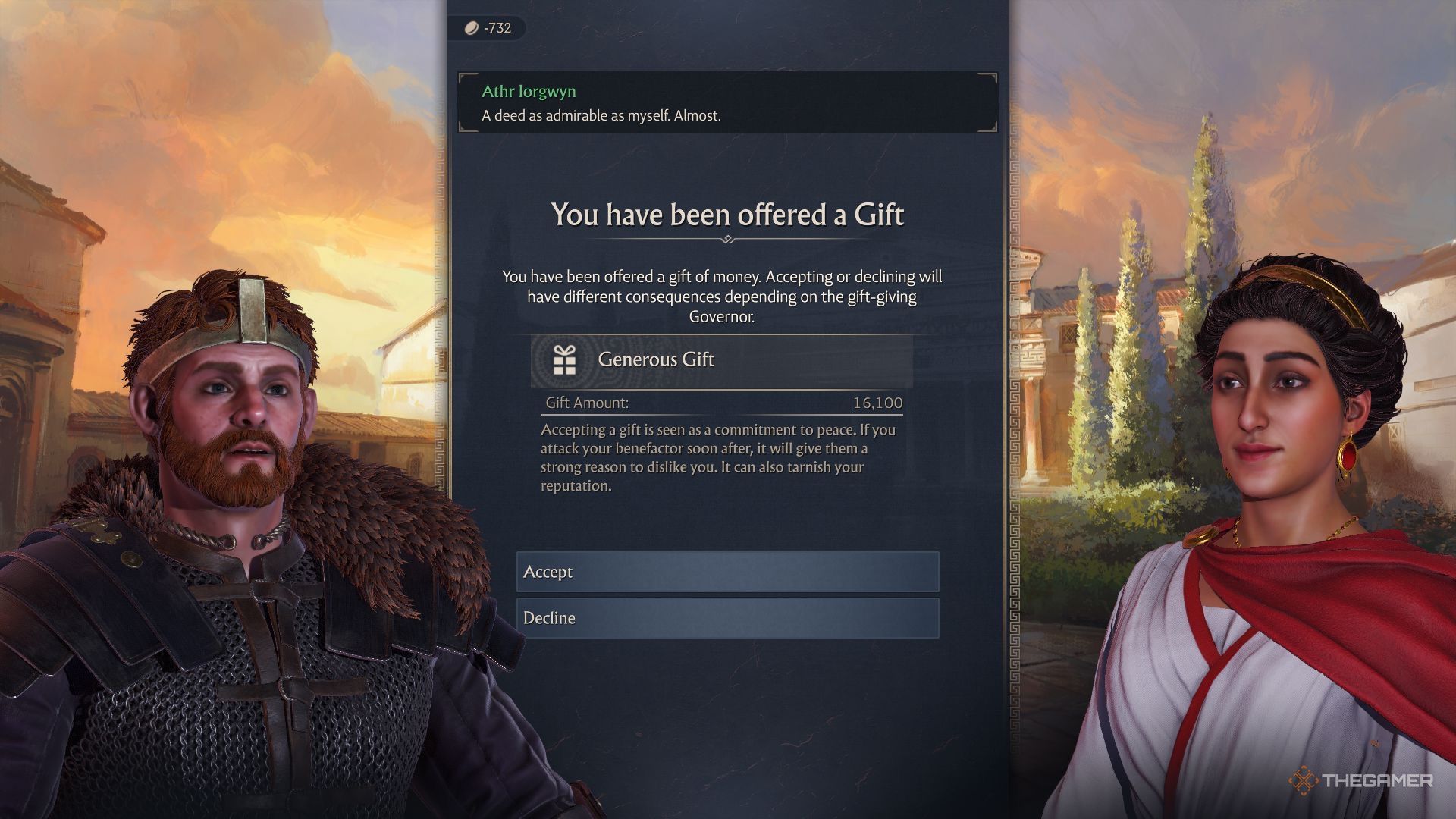 Вы также можете получить денежный подарок от противника, и у вас будет возможность принять его или отказаться.