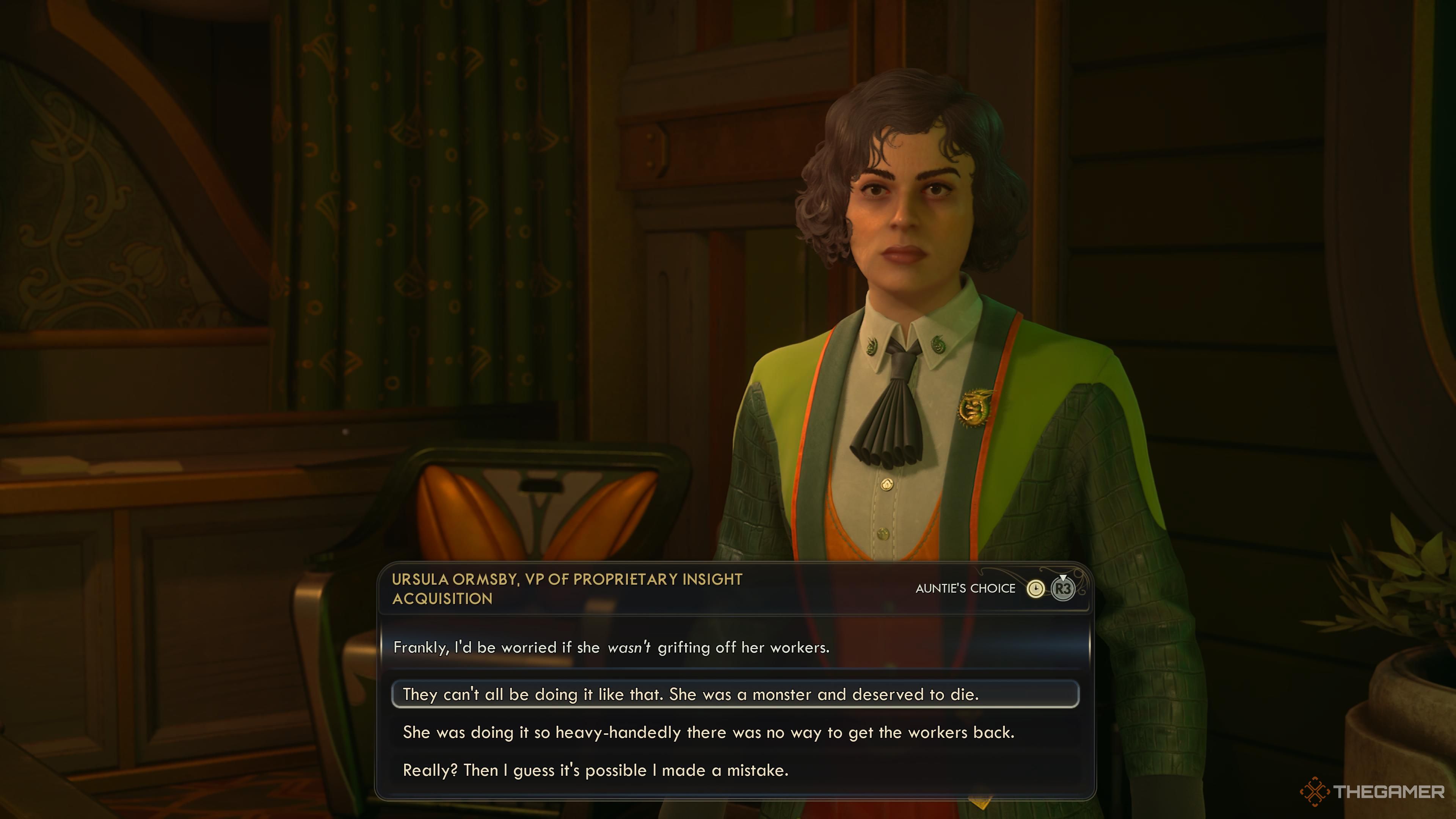 Если вы убили Григгс, вы можете объяснить, что она воровала деньги – это почти ожидаемо, и было бы страннее, если бы она этого не сделала. Вы также можете сказать, что её явные действия помешали сотрудникам вернуться к работе, что делает ваше решение понятным.