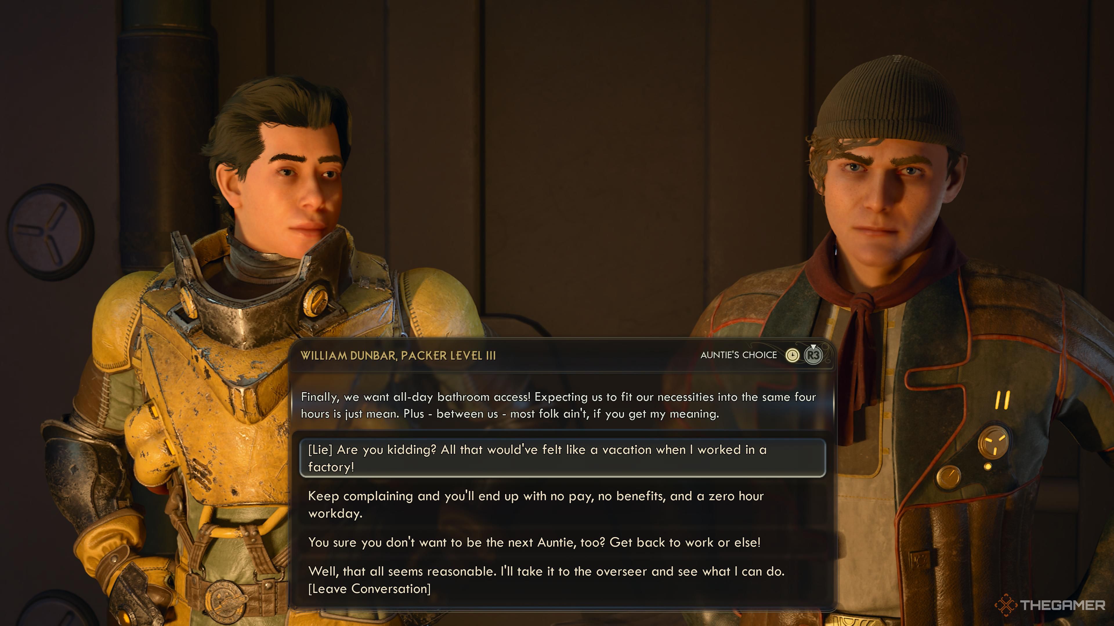 В The Outer Worlds 2 вы встретите множество различных фракций, борющихся за власть в регионе Arcadia. Одна из них, Auntie’s Choice, может показаться знакомой, если вы играли в первую игру. Она была образована, когда Auntie Cleo’s и Spacer’s Choice объединились, хотя это скорее было поглощение одной компании другой. Естественно, они будут рады вашей помощи.