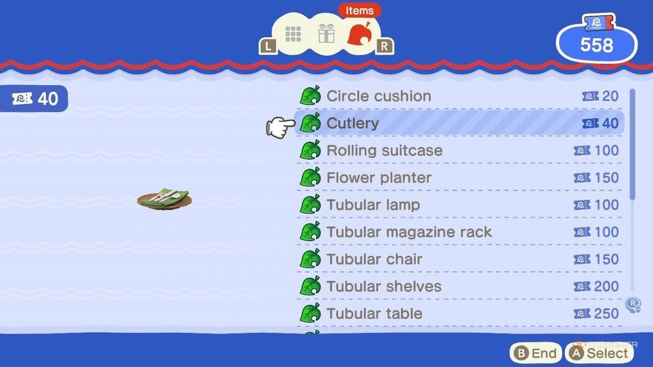Если вам когда-либо нравилось обслуживание в номерах в отеле или курорте, вы знакомы с дополнительными деталями – такими как приправы, соусы и красивая посуда с большим количеством столовых приборов. Вы можете найти аналогичный набор столовых приборов – называемый ‘Cutlery’ – в сувенирном магазине Grams в Resort Hotel в Animal Crossing: New Horizons, идеально подходящий для того, чтобы каждое блюдо казалось особенным.